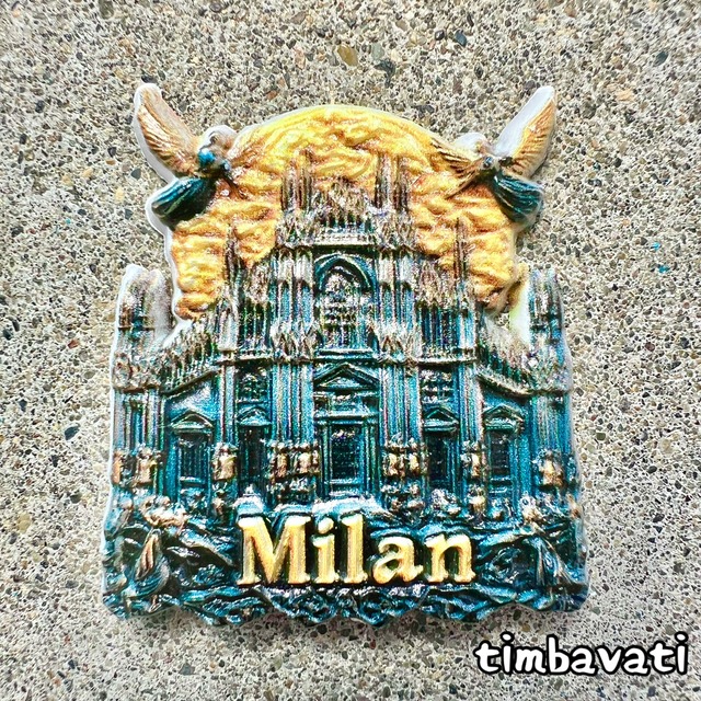イタリア ミラノを描いたマグネットです なかなか手に入らない貴重な逸品です。 ※手工芸品ですので完璧を求める方は購入をご遠慮ください。 【サイズ】約5.5cm×約7.2cm×h約1.2cm