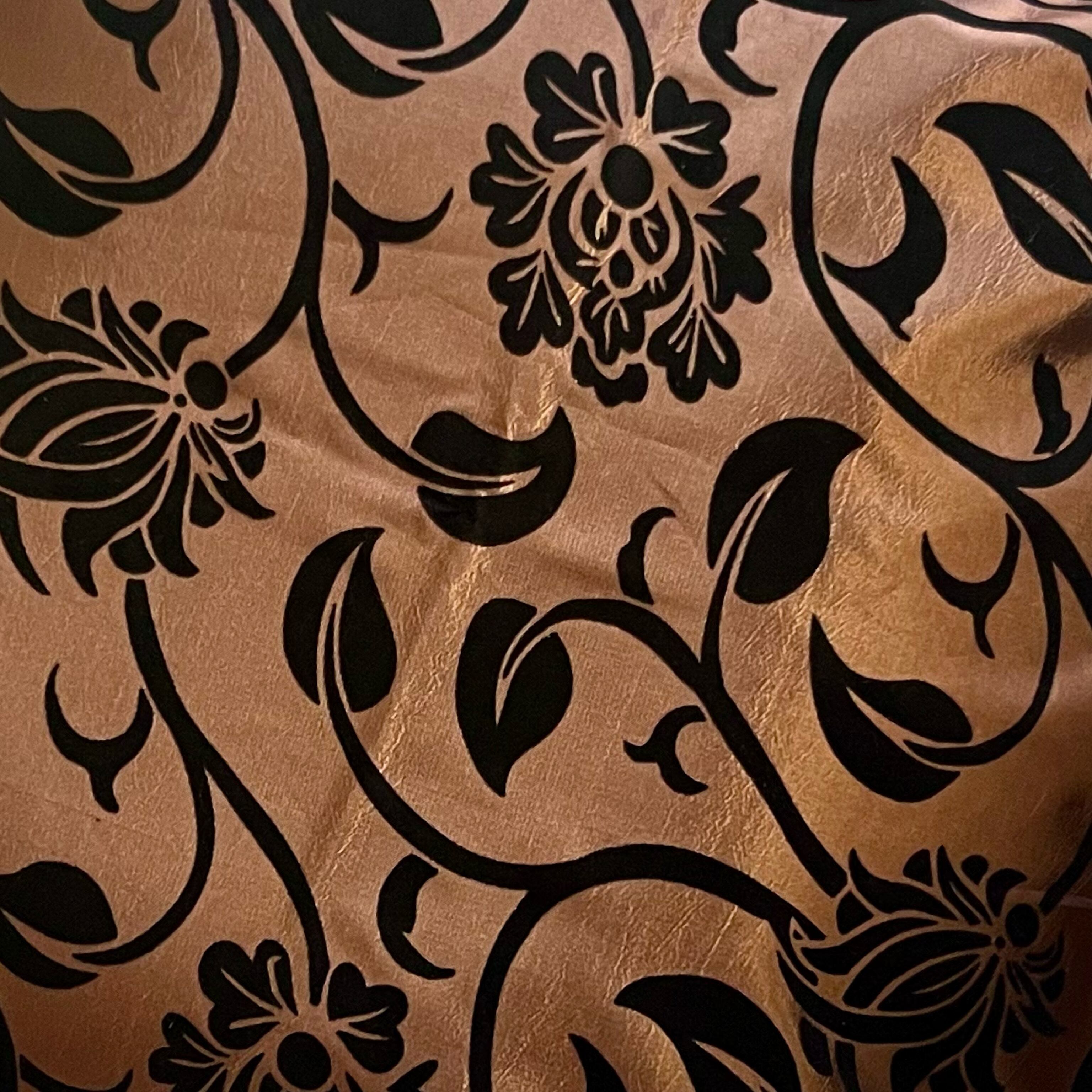 【マレーシア】花柄 光沢 クッションカバー*ブラウン*