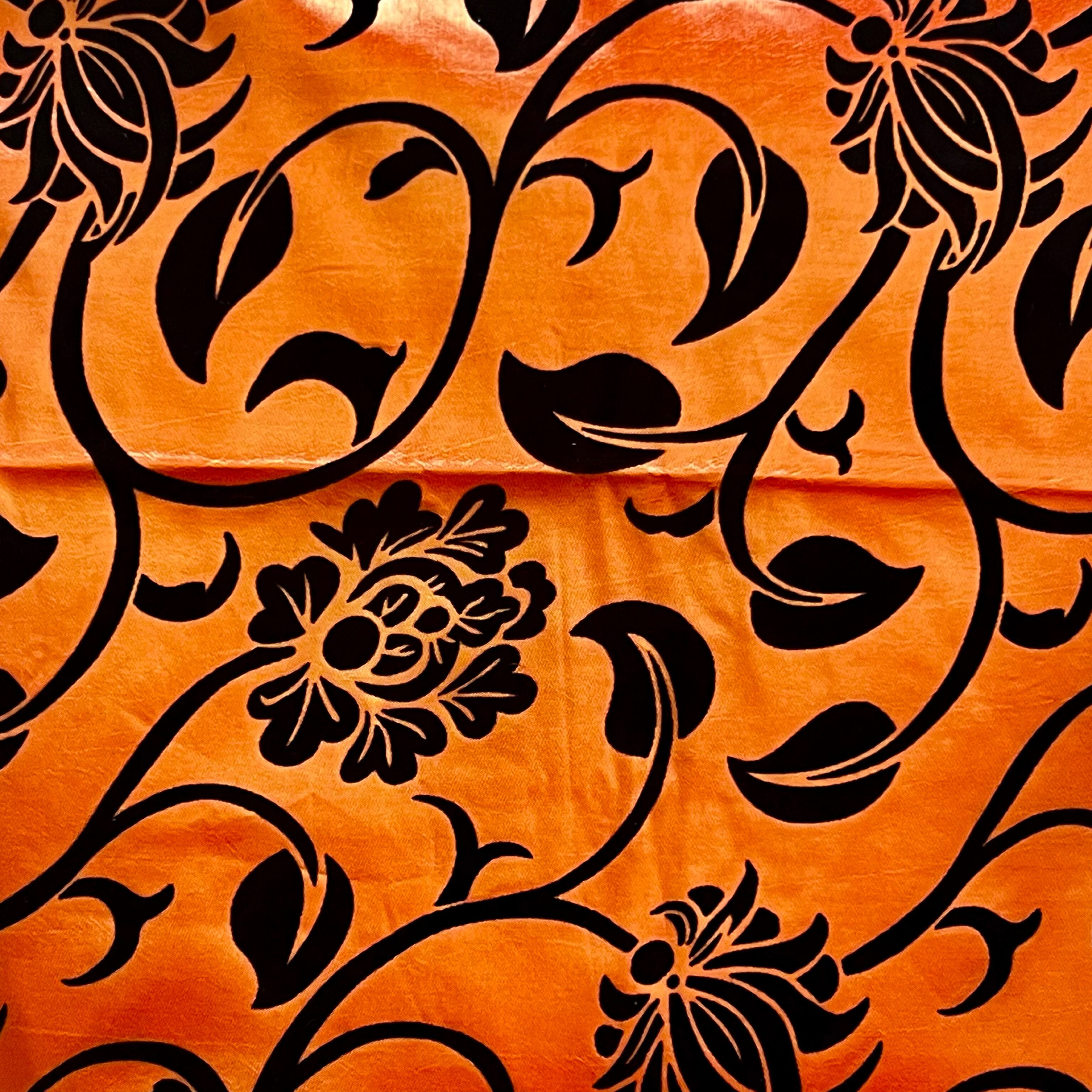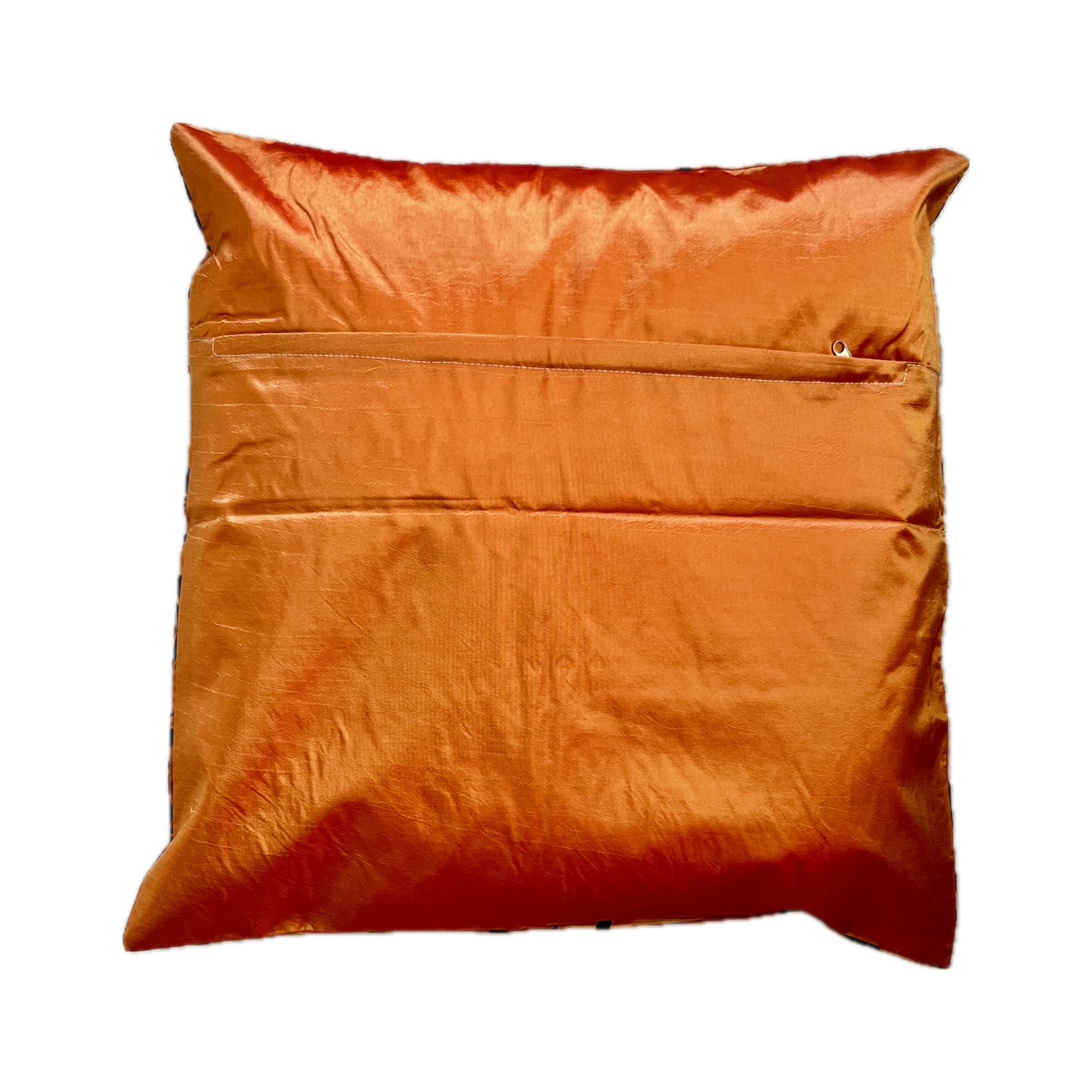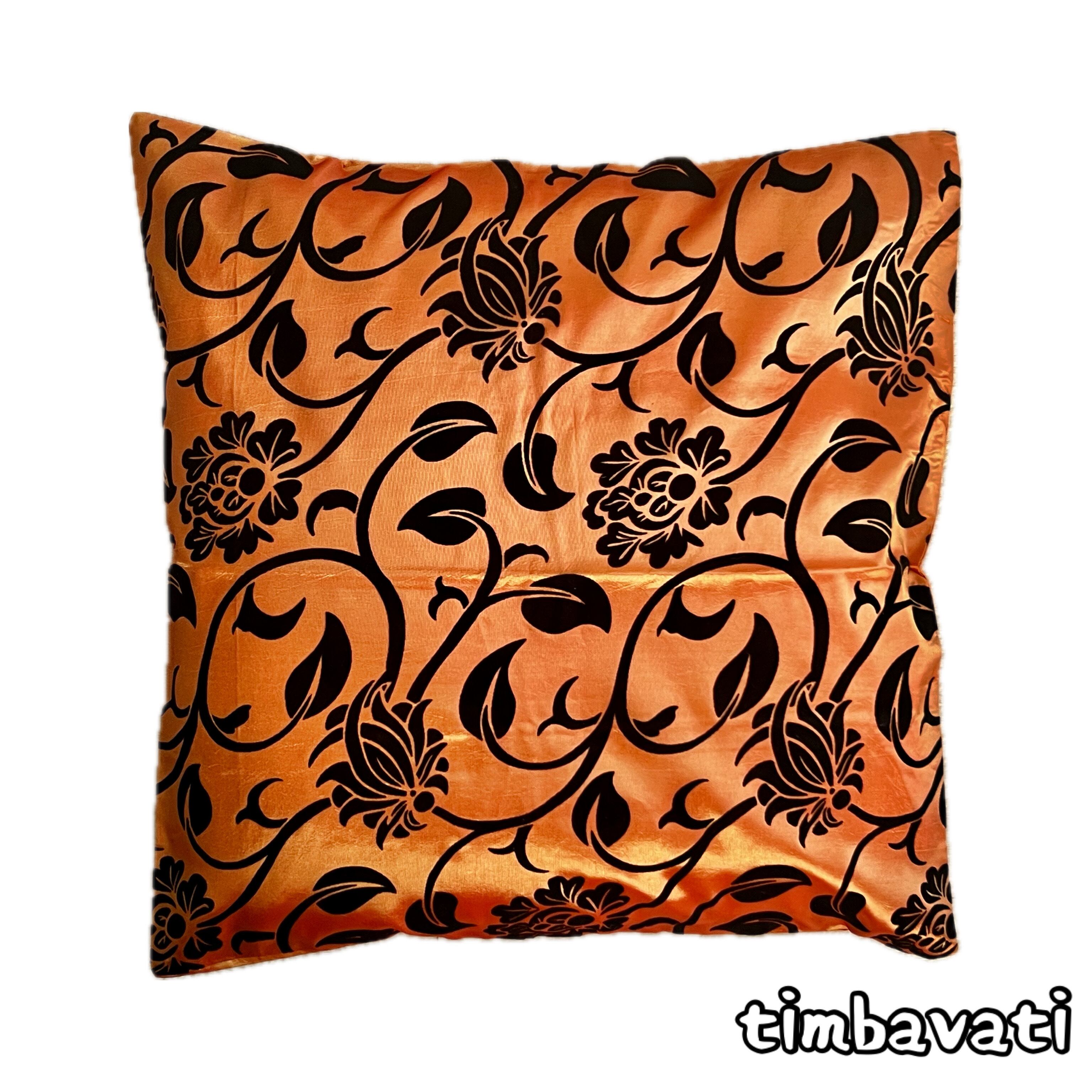【マレーシア】花柄 光沢 クッションカバー*オレンジ*