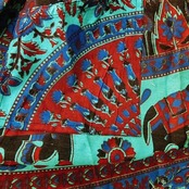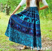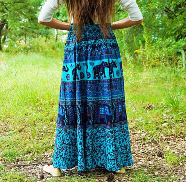 【ネパール】アジアン柄 ロングスカート フリーサイズ (ブルー) ポケット×2