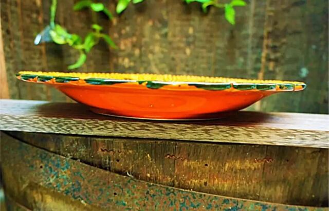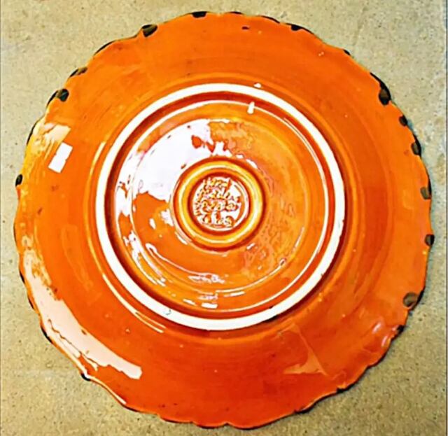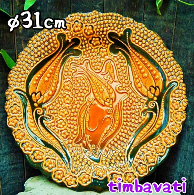 31cm【トルコ陶器】手描き 大皿 壁掛け *オレンジ* キュタフヤ