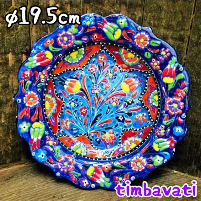 19.5cm【トルコ陶器】手描き 中皿 壁掛け *ブルー*キュタフヤ陶器