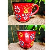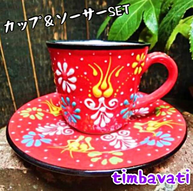 【トルコ陶器】セラミック マグカップ&ソーサーセット *赤* キュタフヤ