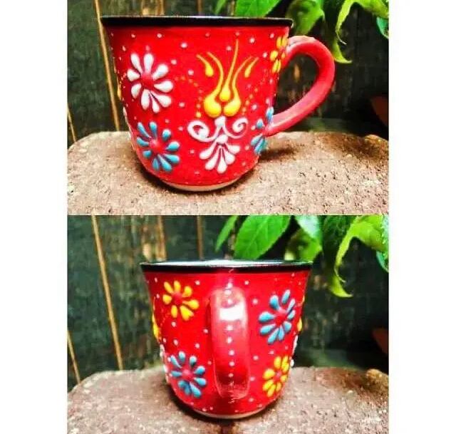 トルコの職人が1点1点絵付けしたかわいいトルコセラミック陶器のマグカップ&ソーサー