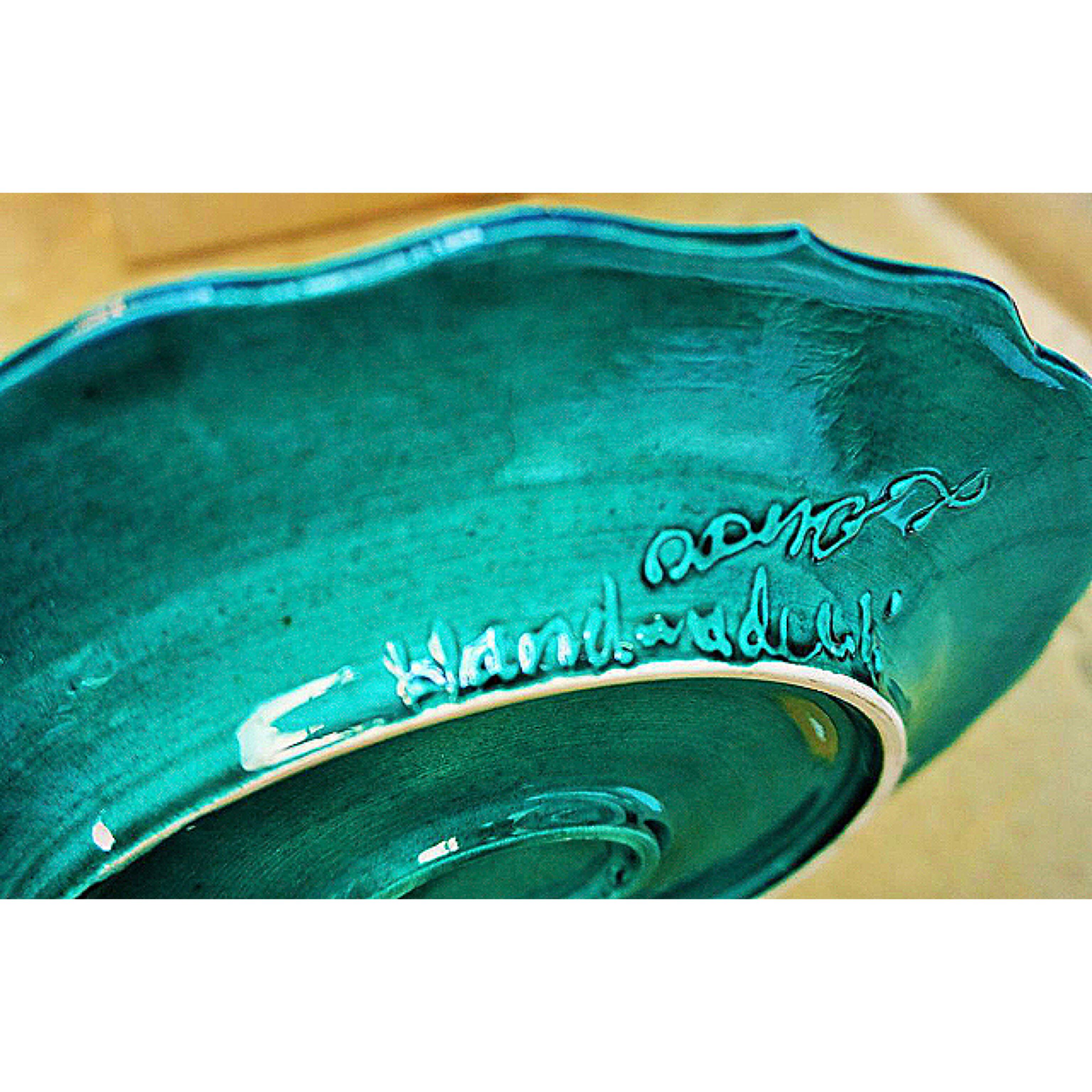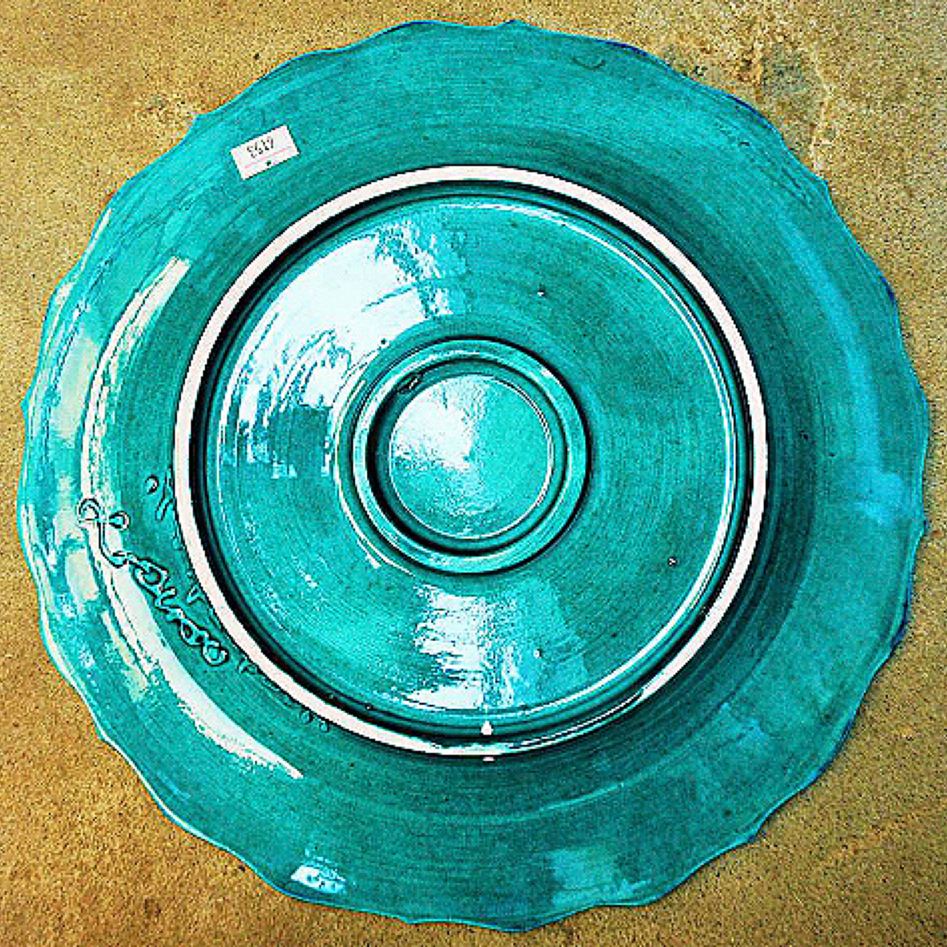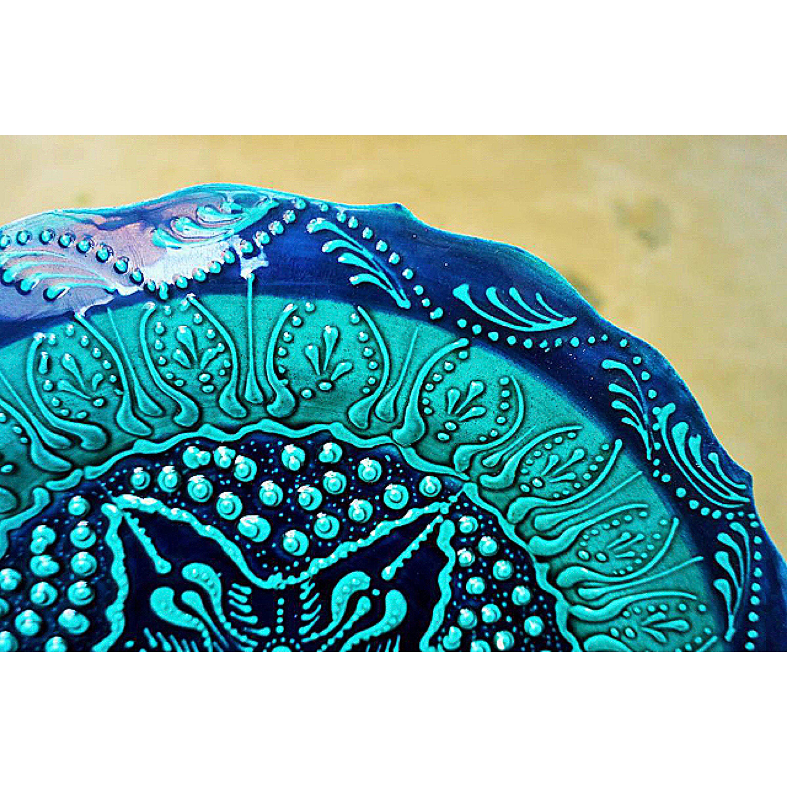 31.5cm【トルコ陶器】手描き 大皿 壁掛け *ターコイズ*キュタフヤ