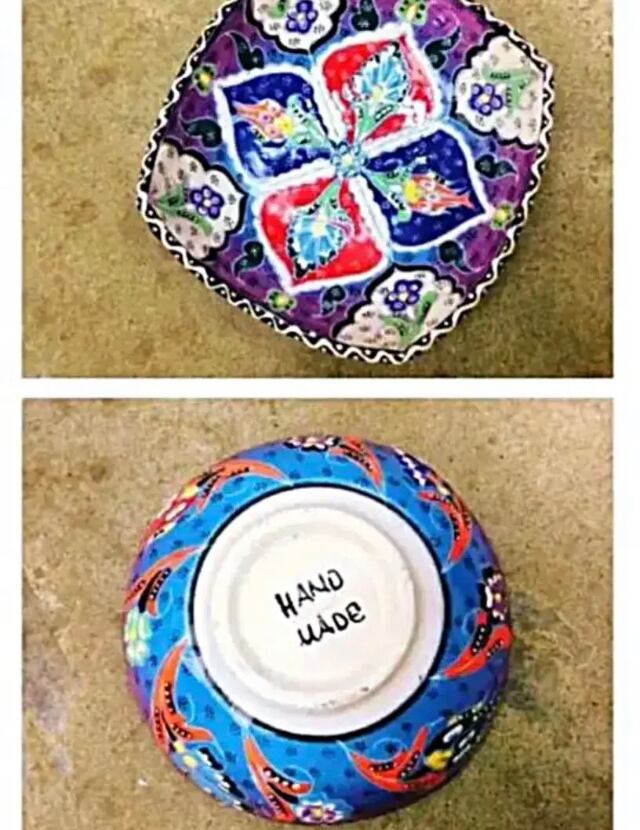 トルコの職人が一点一点絵付けした可愛らしいトルコ陶器のボウル皿
