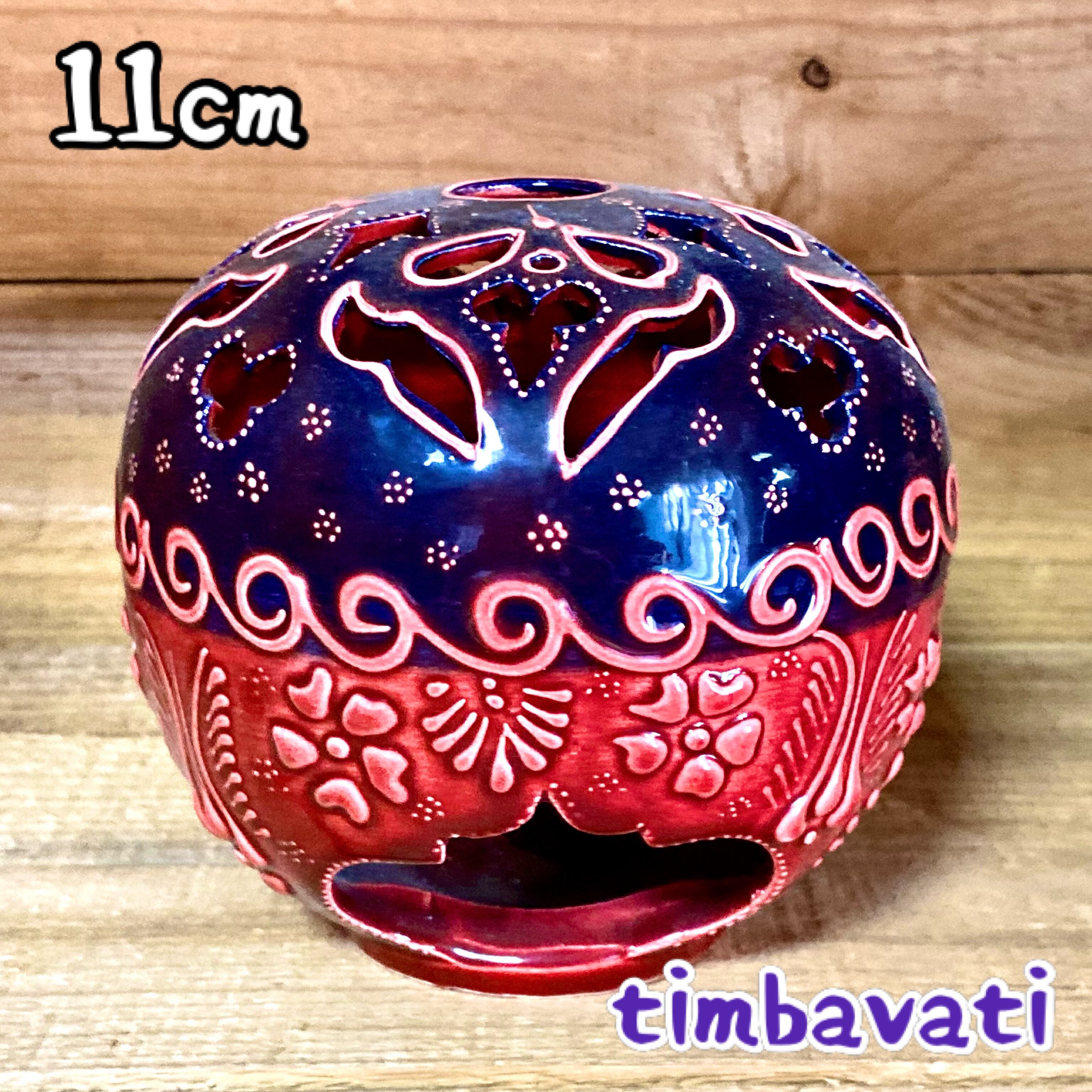 11cm【トルコ陶器】キャンドルホルダー *赤* ハンドメイド キュタフヤ陶器