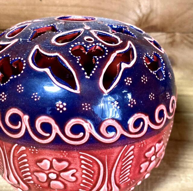トルコの職人が1点1点絵付けしたかわいいトルコセラミック陶器のキャンドルホルダーです
