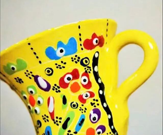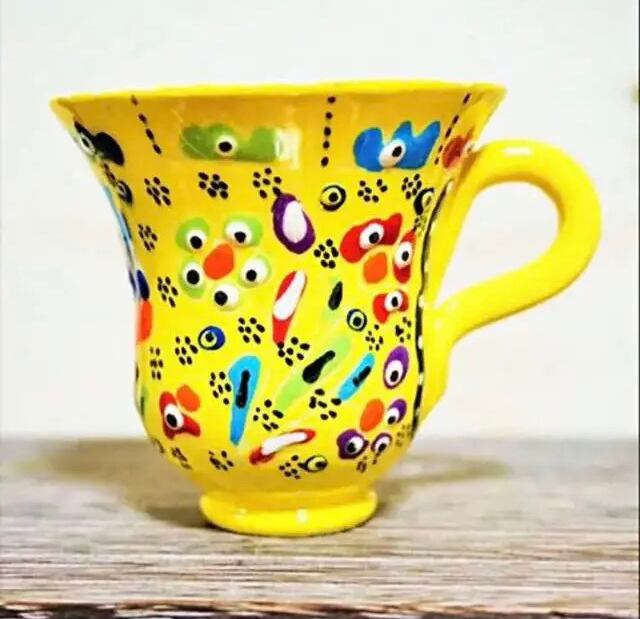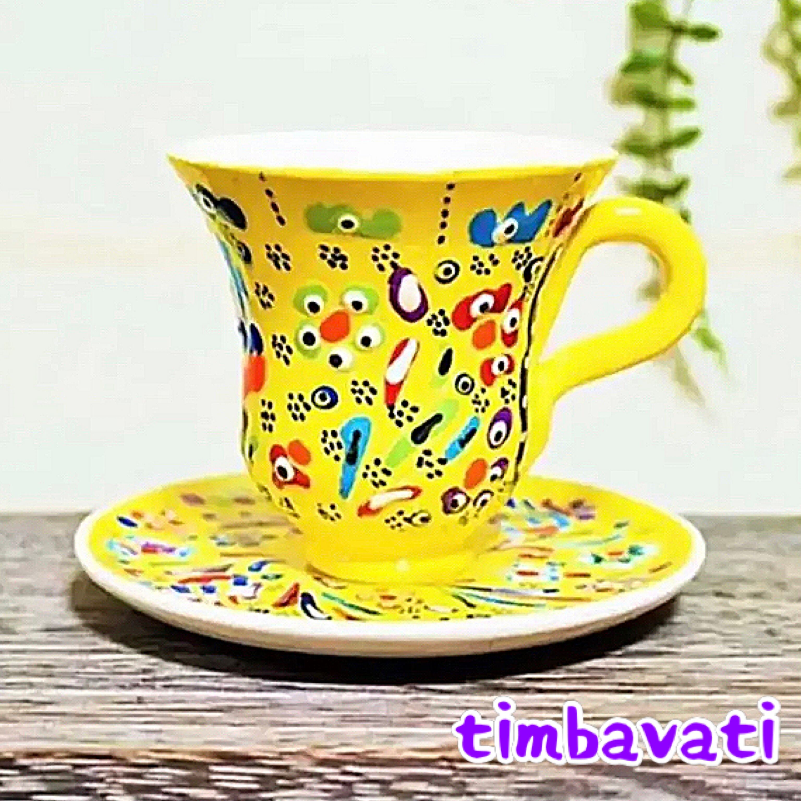 【トルコ陶器】手描き チャイグラス&ソーサーセット クレイ *イエロー*