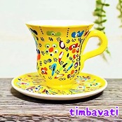 トルコの職人が1点1点絵付けしたかわいいトルコ陶器のチャイグラス(カップ&ソーサー)