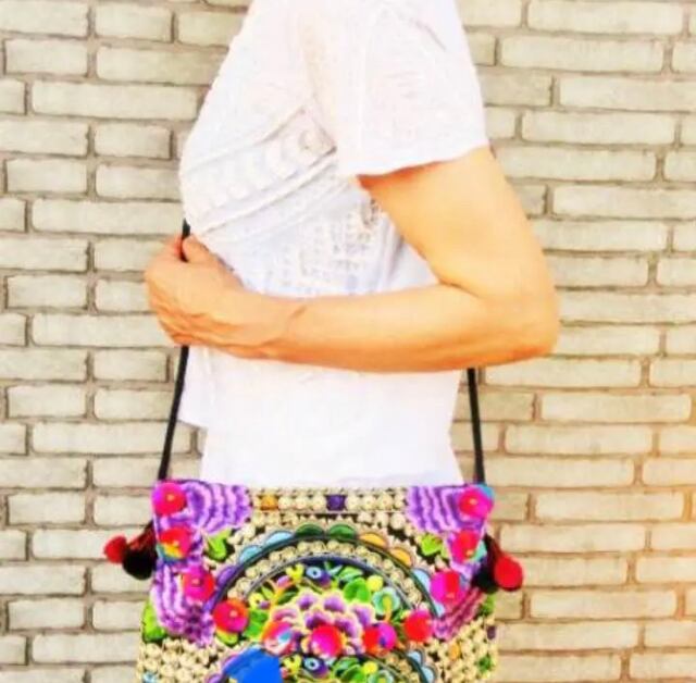 【タイ】モン族 刺繍&ポンポン 2WAYバッグ (クラッチバッグ ショルダーバッグ)