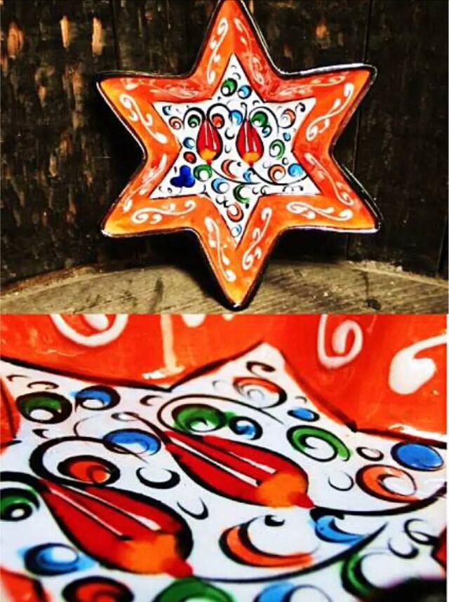 トルコの職人が1点1点絵付けしたかわいいトルコ陶器の星型皿