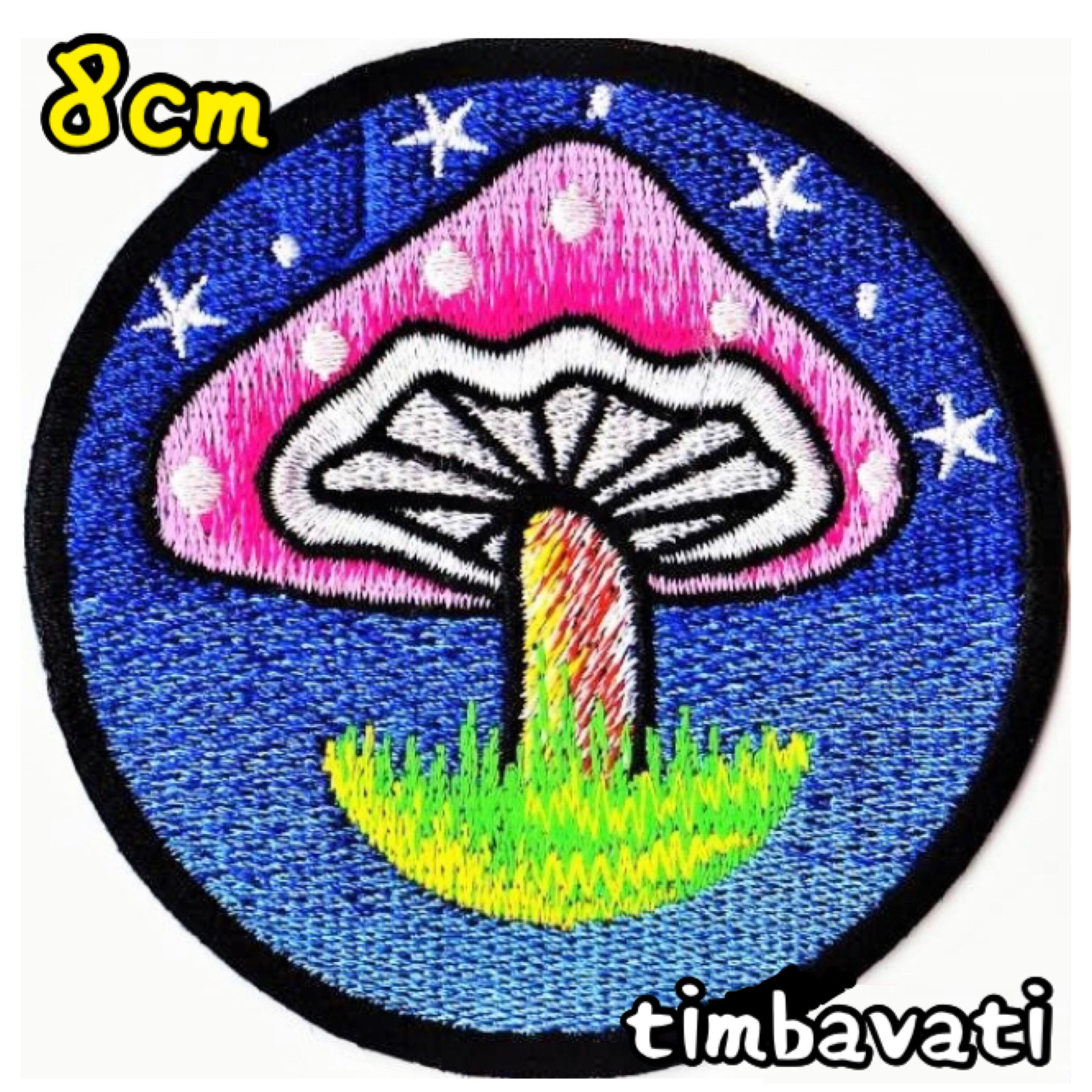直径8cm【インド】カラフル サイケデリック 総刺繍 ワッペン (コースター) *きのこ*