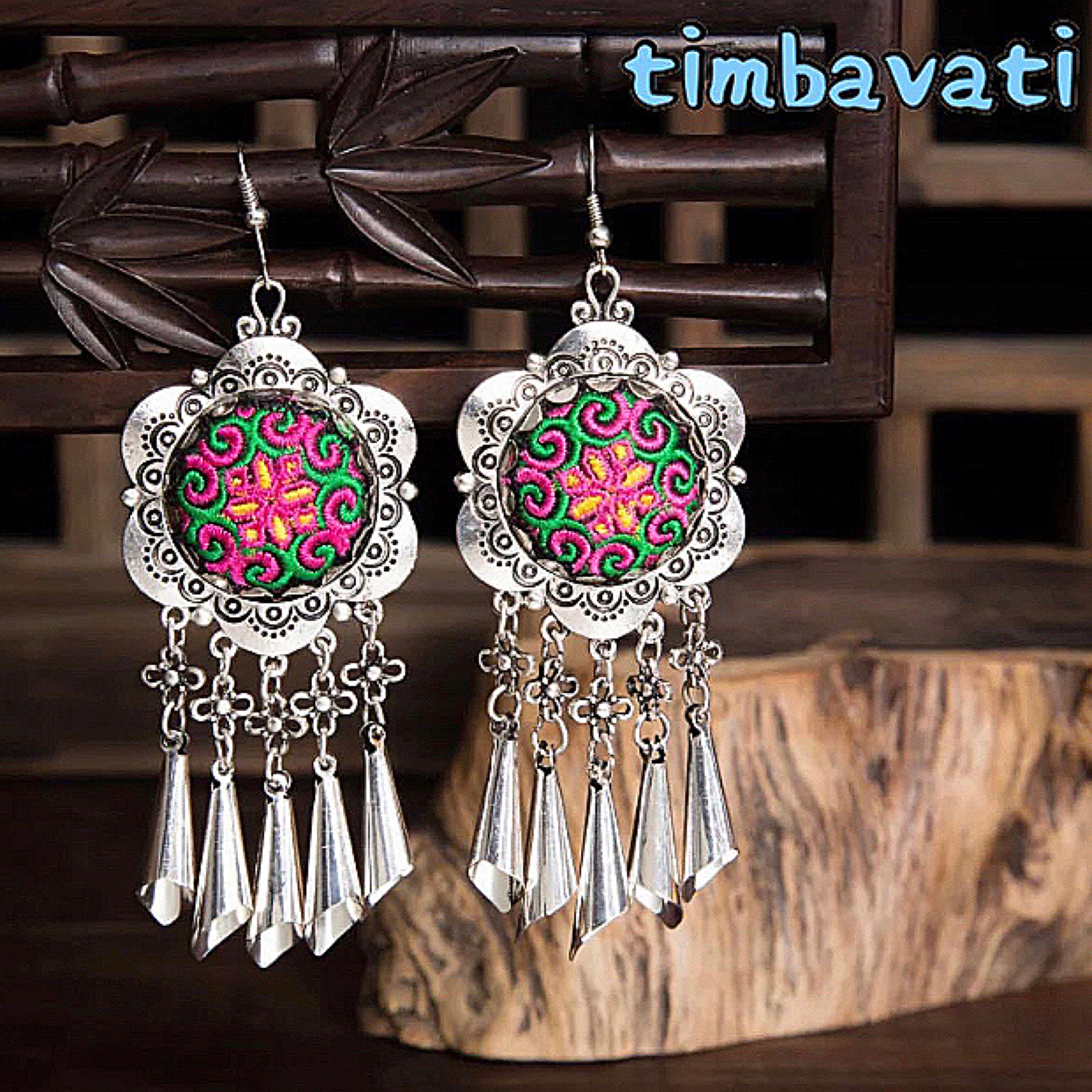 【タイ】モン族 刺繍&シルバー ピアス *ピンク*