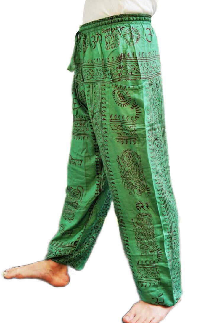 【ネパール】男女兼用 ガーゼ布 ラムナミ (神様布) ボトムス ポケットパンツ フリーサイズ