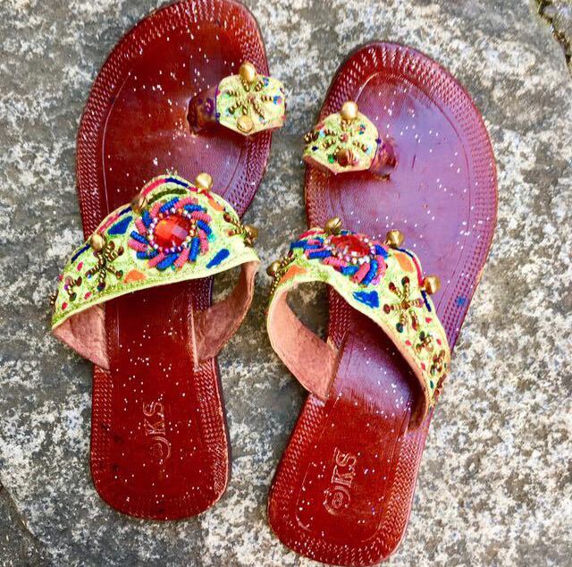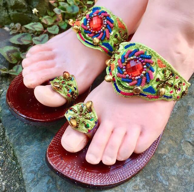 キラキラビーズと鈴が足もとを華やかにしてくれます。