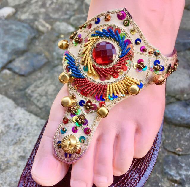 キラキラビーズと鈴が足もとを華やかにしてくれます。
