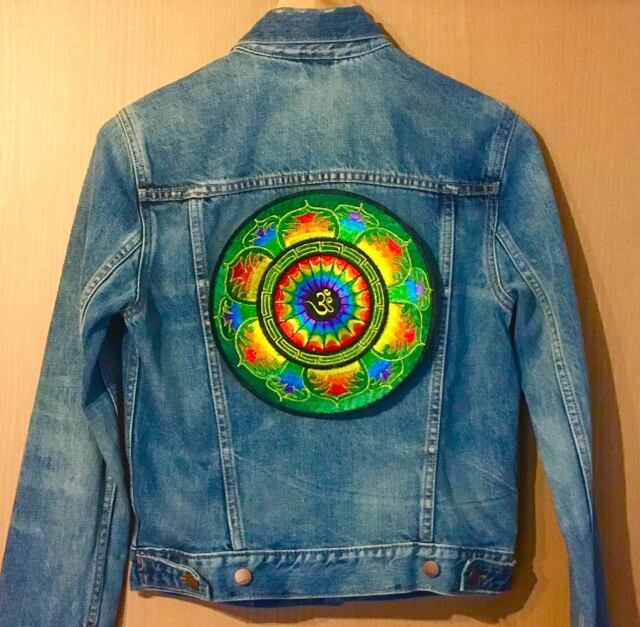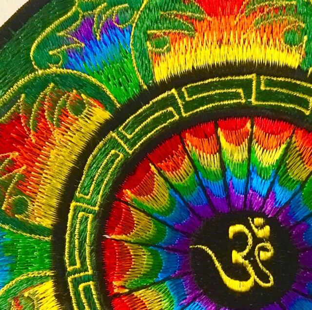直径22cm【インド】カラフル サイケデリック 総刺繍 ワッペン(鍋敷き)