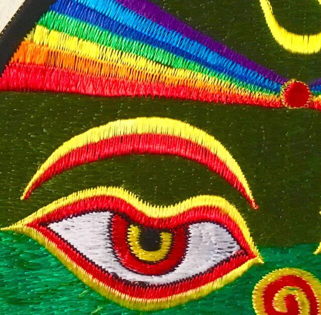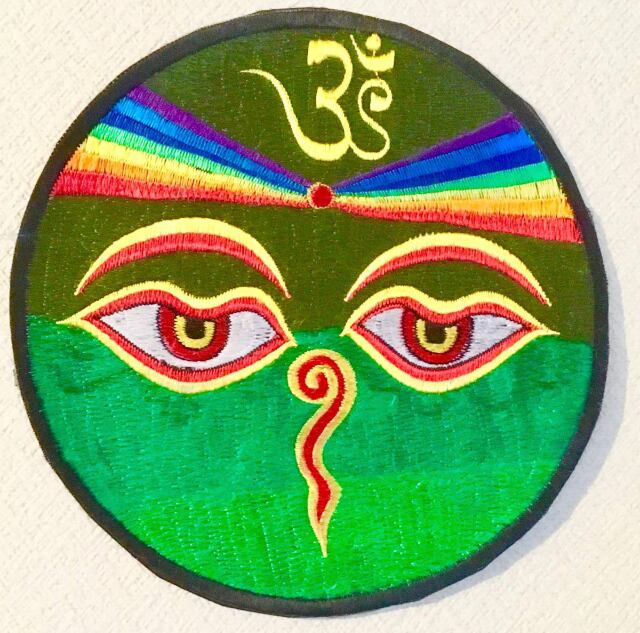 直径22cm【インド】カラフル サイケデリック 総刺繍 ワッペン(鍋敷き)