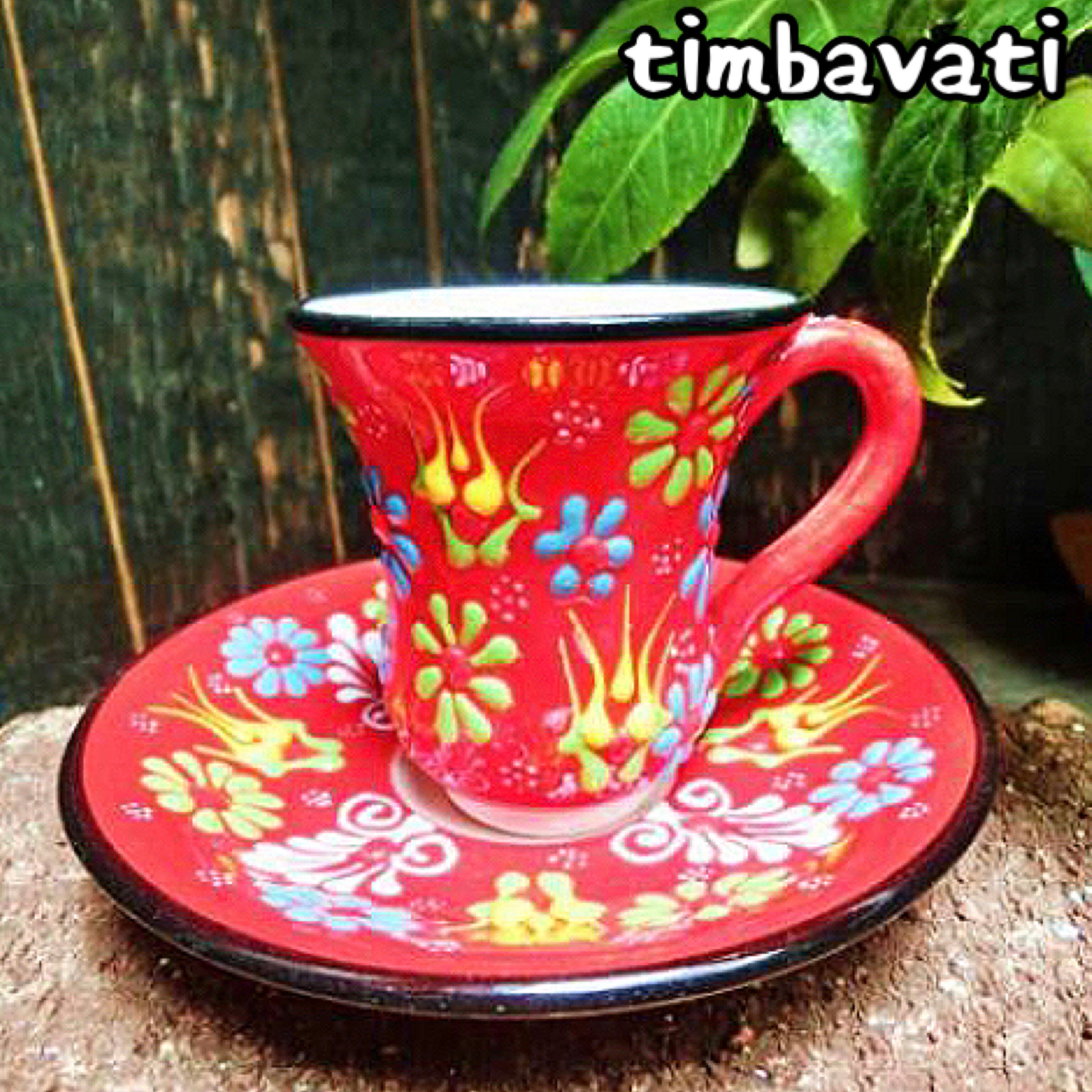 トルコの職人が1点1点絵付けしたかわいいトルコ陶器のチャイグラス(カップ&ソーサー)を直輸入しました!