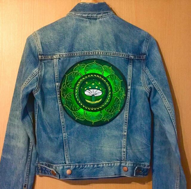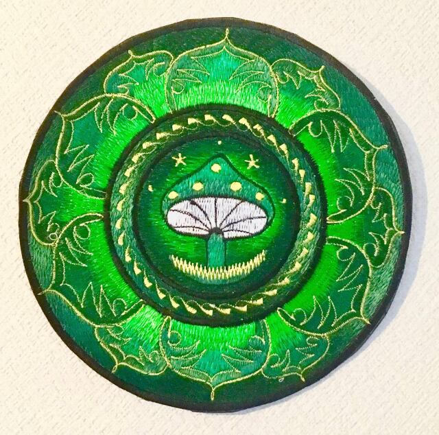 直径22cm【インド】カラフル サイケデリック 総刺繍 ワッペン(鍋敷き)