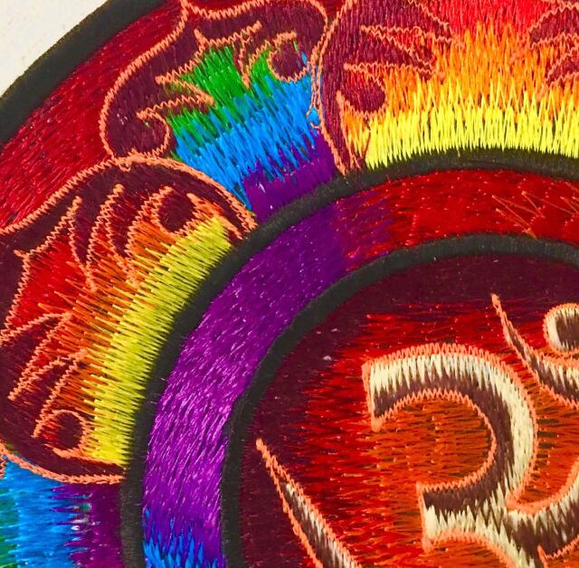 直径22cm【インド】カラフル サイケデリック 総刺繍 ワッペン(鍋敷き)
