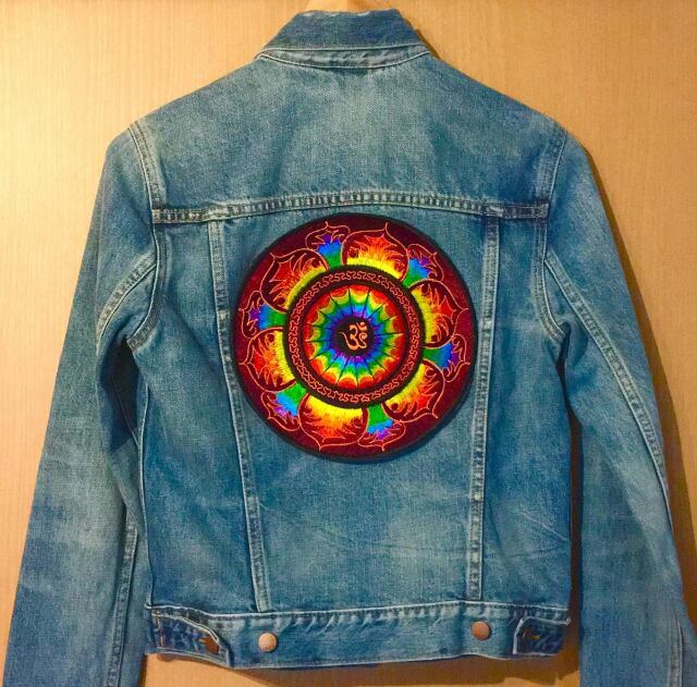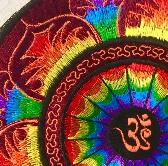 直径22cm【インド】カラフル サイケデリック 総刺繍 ワッペン(鍋敷き)