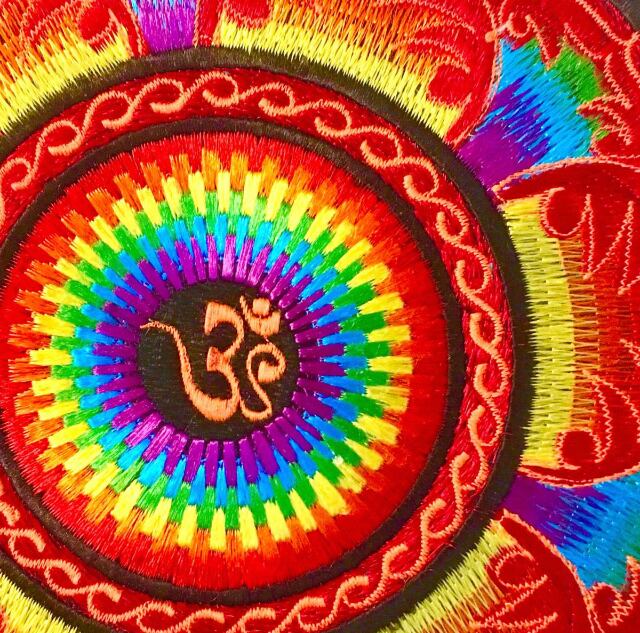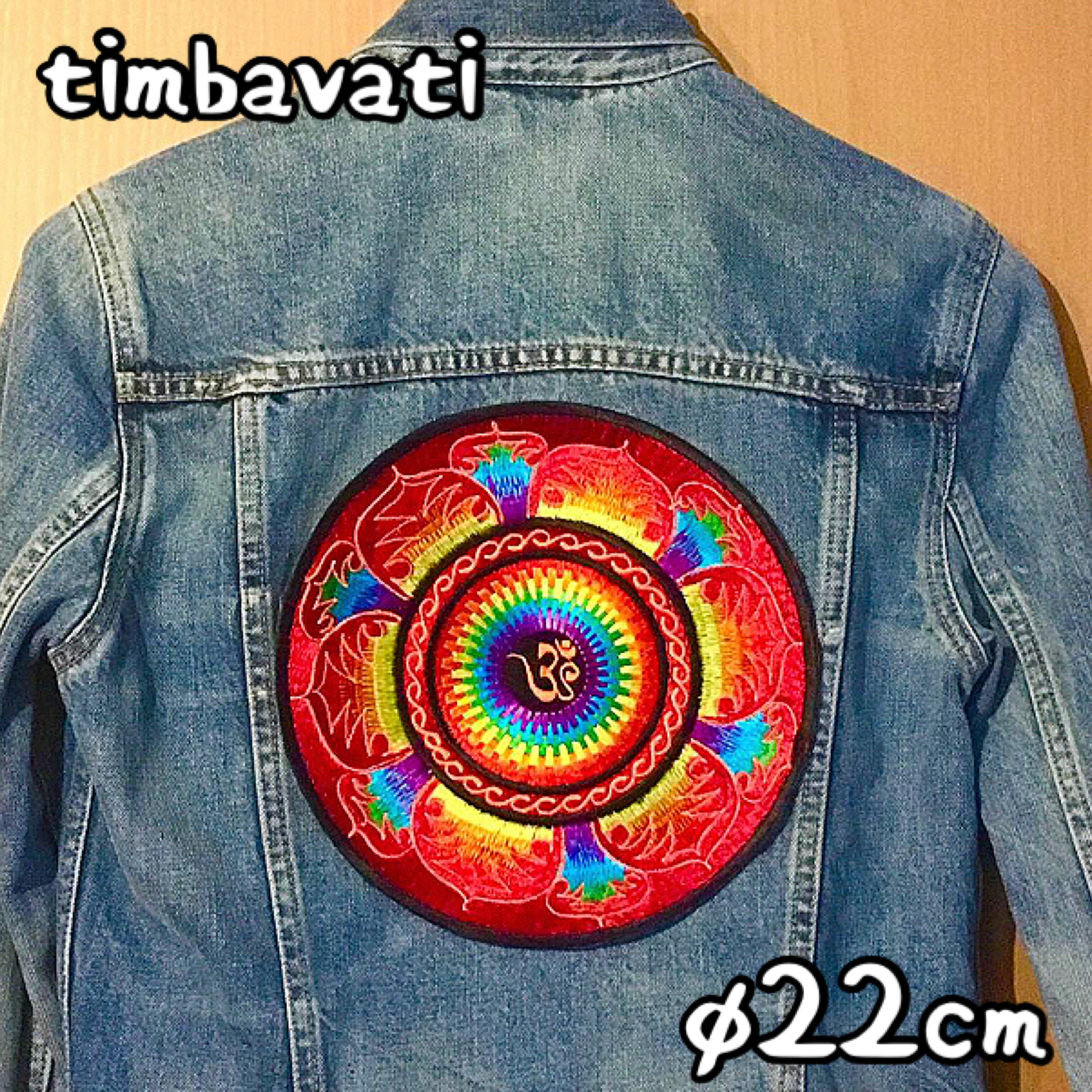 直径22cm【インド】カラフル サイケデリック 総刺繍 ワッペン(鍋敷き)