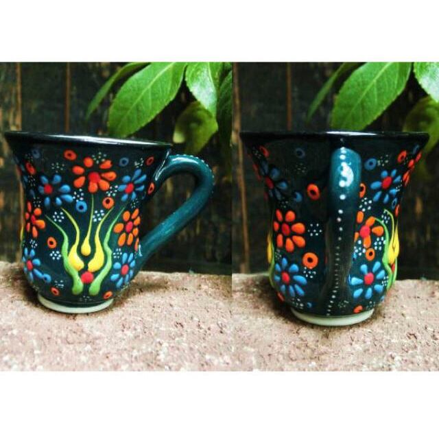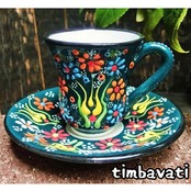 トルコの職人が1点1点絵付けしたかわいいトルコ陶器のチャイグラス(カップ&ソーサー)