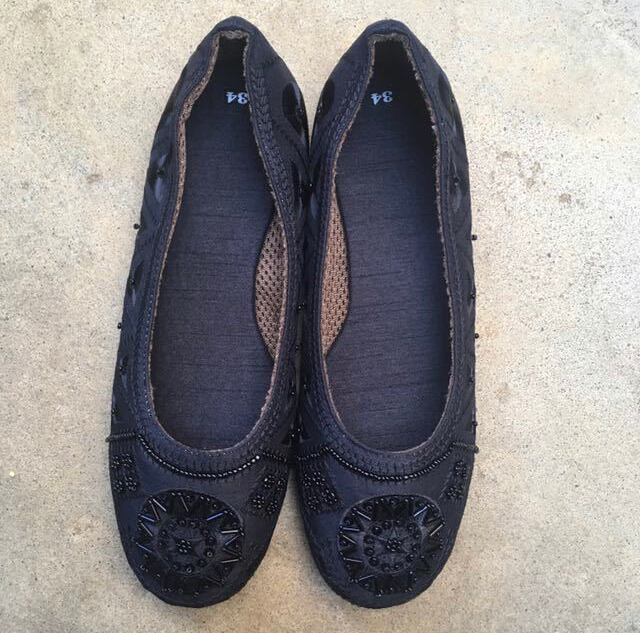 【ベトナム】アジアン ビーズ&刺繍 フラットシューズ *ブラック系*