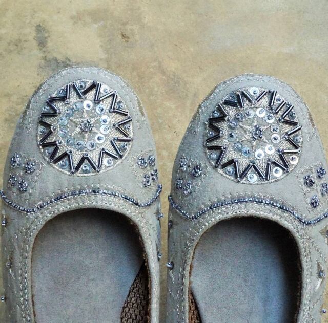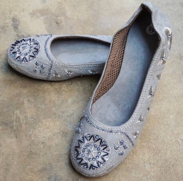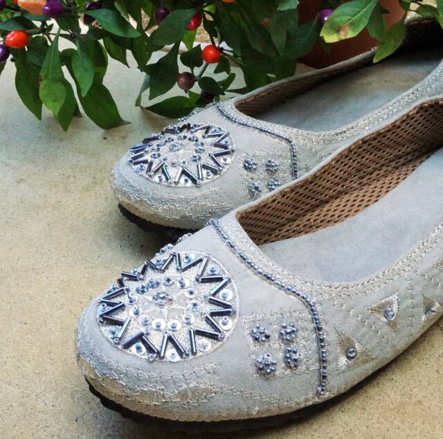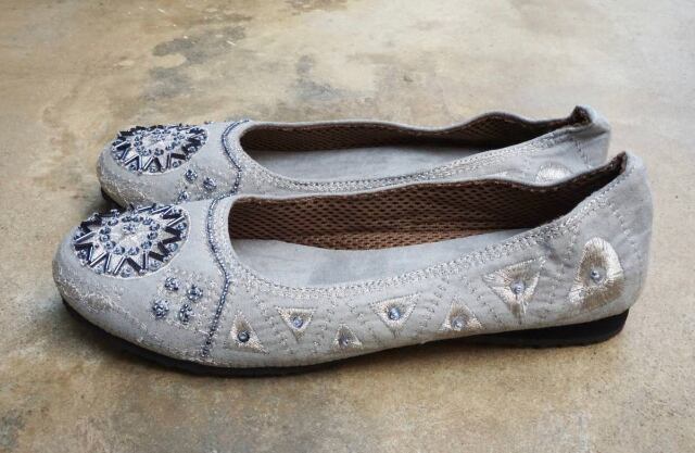 【ベトナム】アジアン ビーズ&刺繍 フラットシューズ *グレー系*