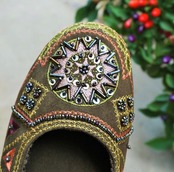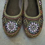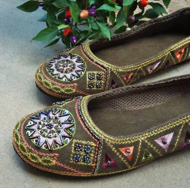 【ベトナム】アジアン ビーズ&刺繍 フラットシューズ *カーキ系*