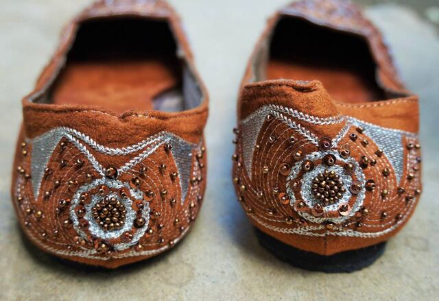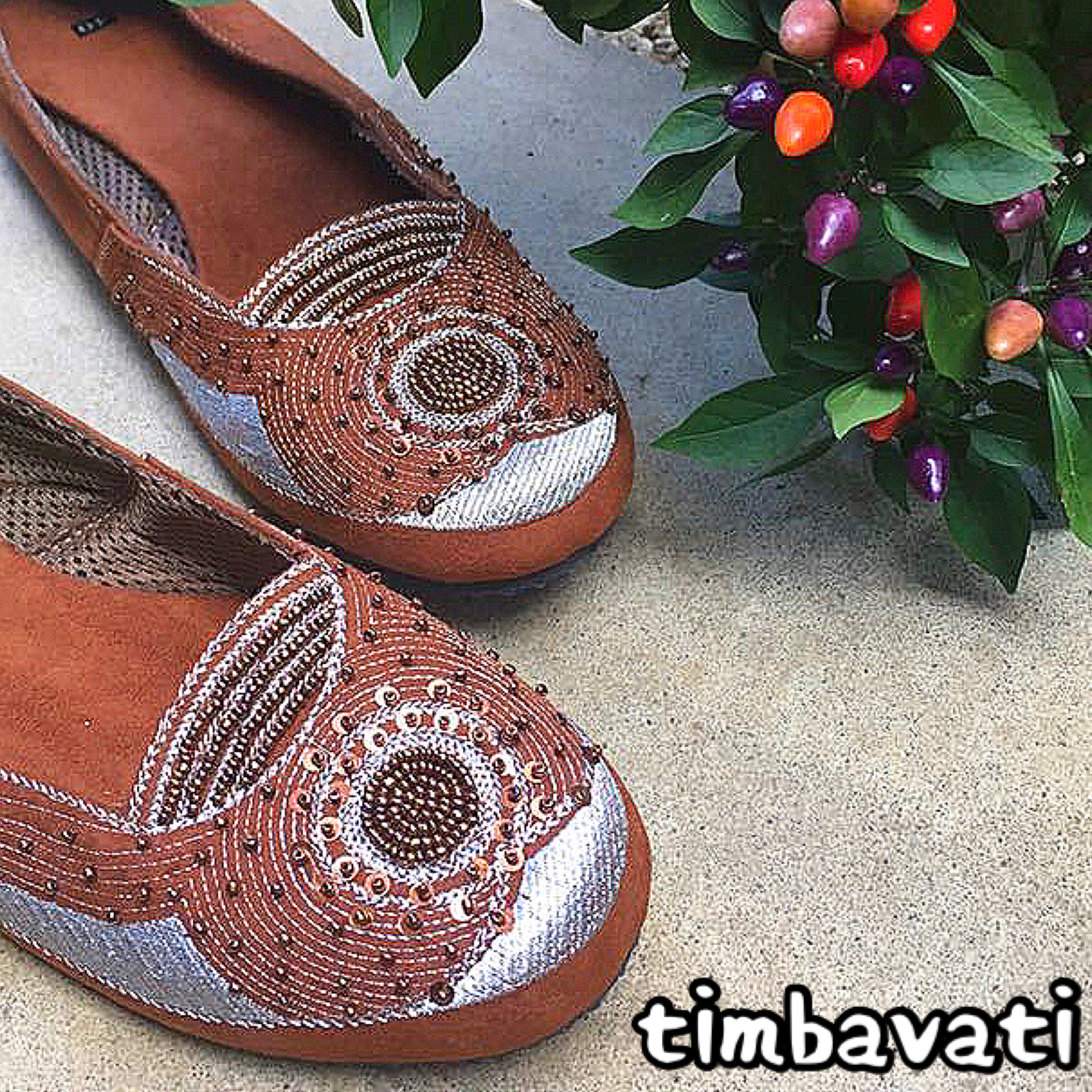 【ベトナム】アジアン ビーズ&刺繍 フラットシューズ *ブラウン系*