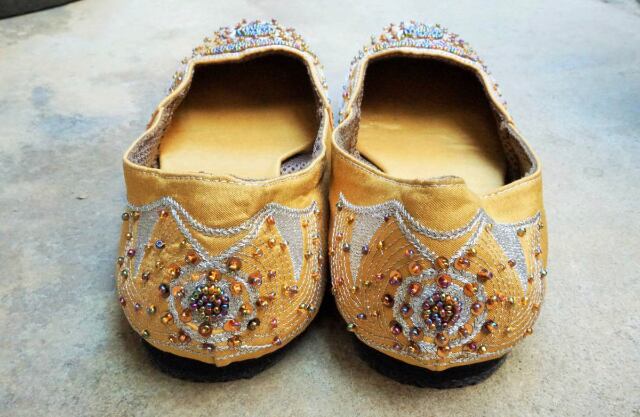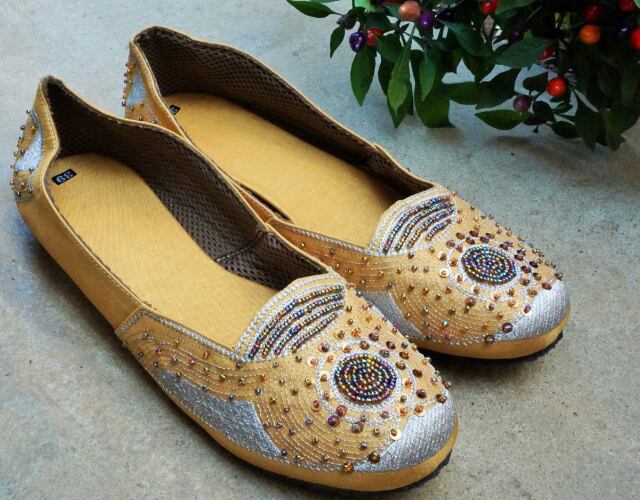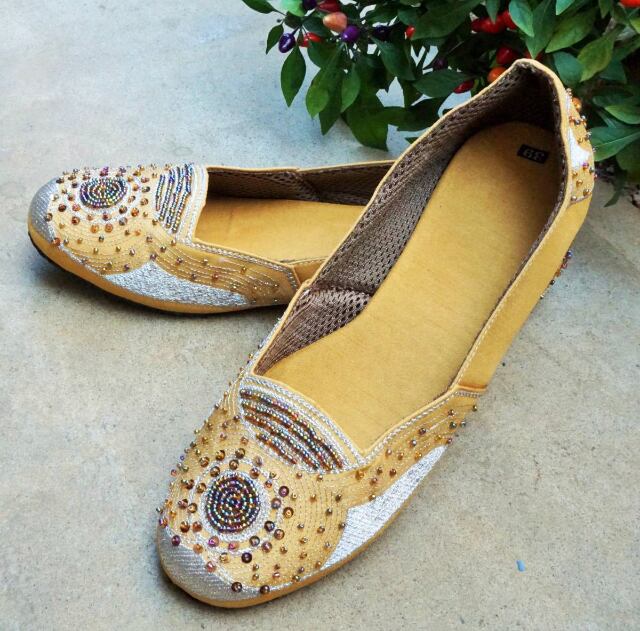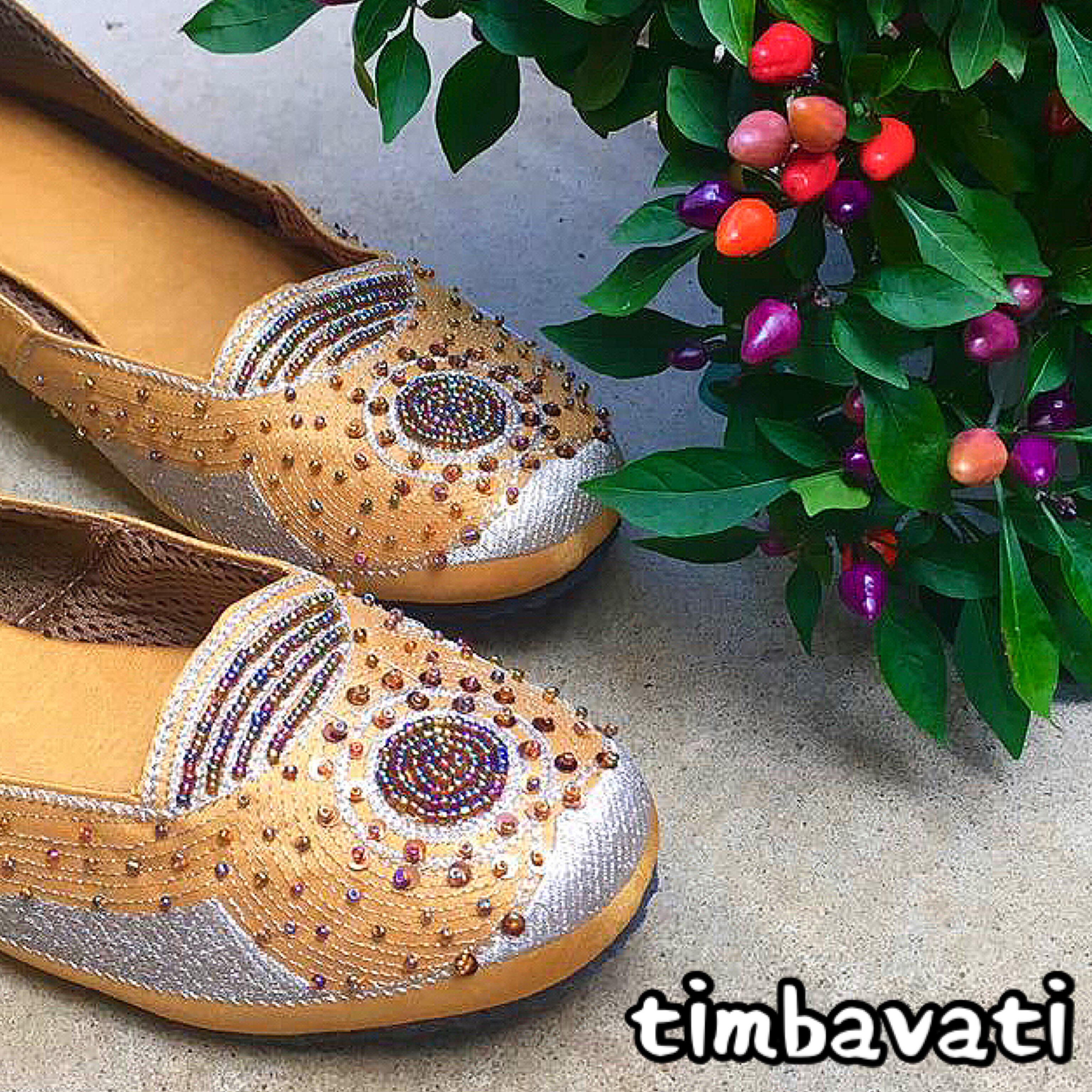 【ベトナム】アジアン ビーズ&刺繍 フラットシューズ *ベージュ系*