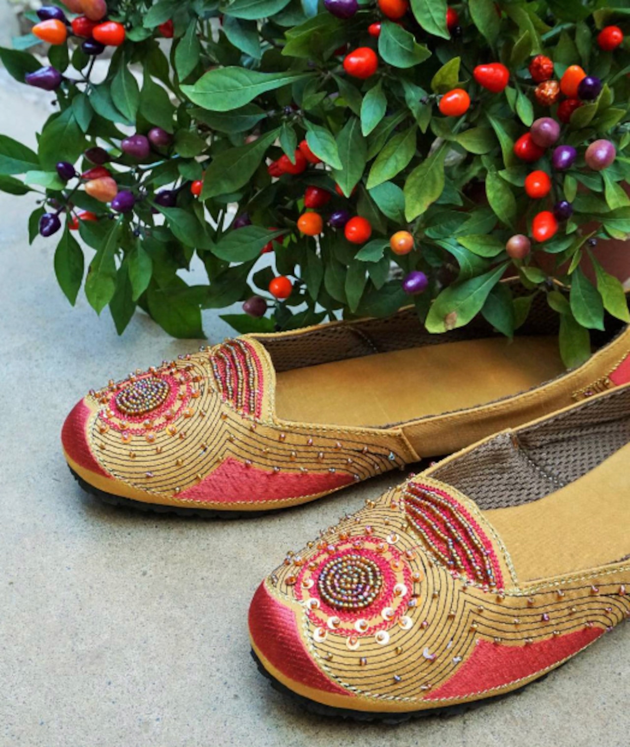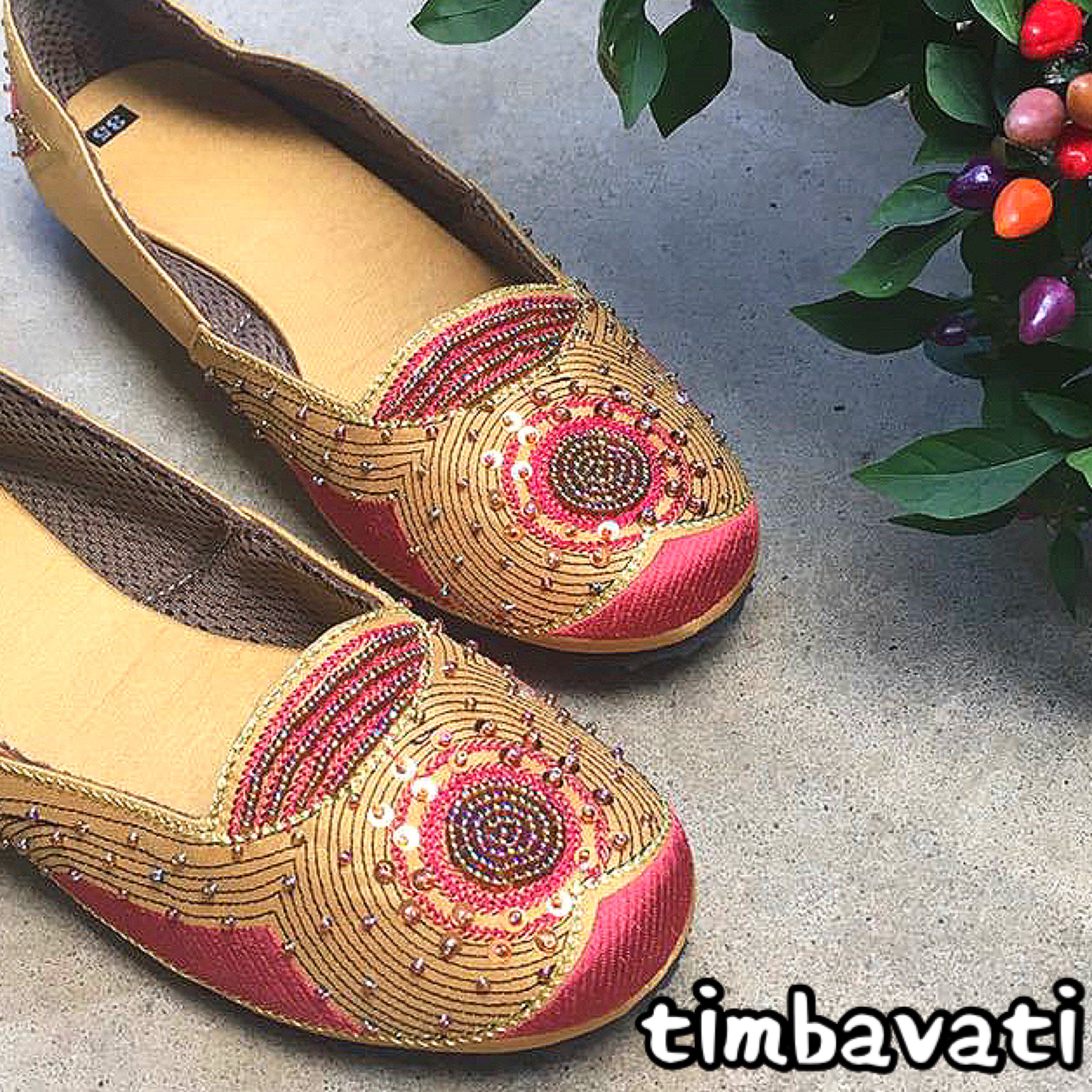 【ベトナム】アジアン ビーズ&刺繍 フラットシューズ *ベージュ系*