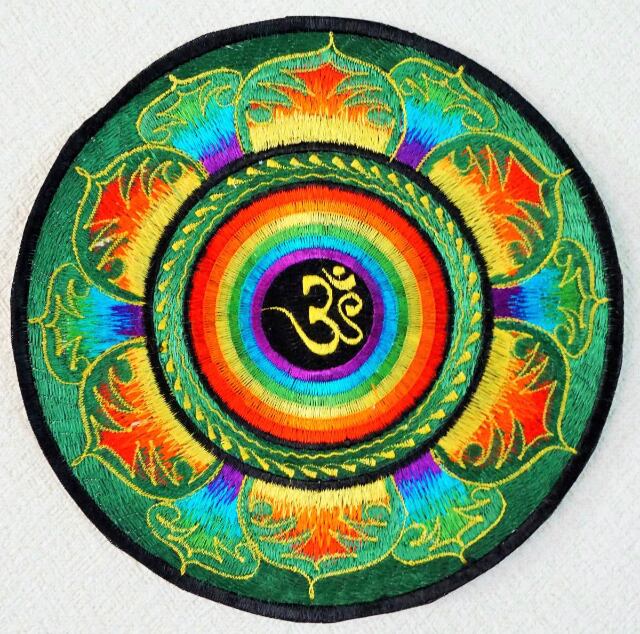 直径22cm【インド】カラフル サイケデリック 総刺繍 ワッペン(鍋敷き)