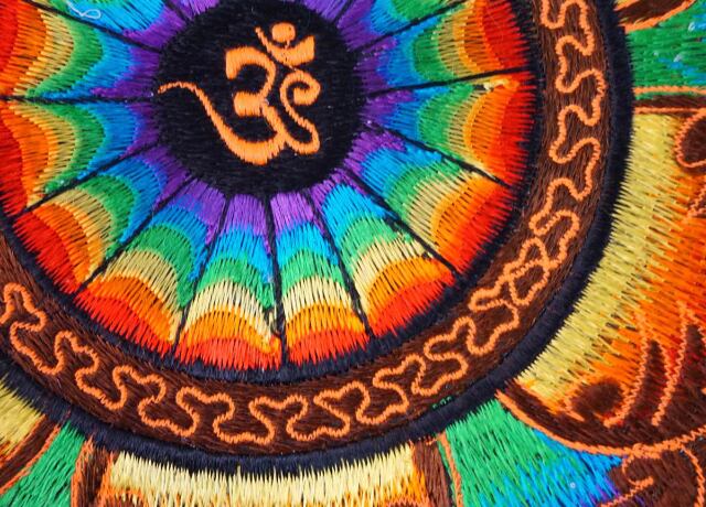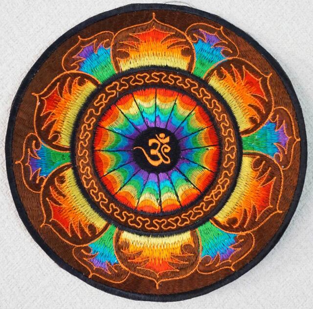 直径22cm【インド】カラフル サイケデリック 総刺繍 ワッペン(鍋敷き)