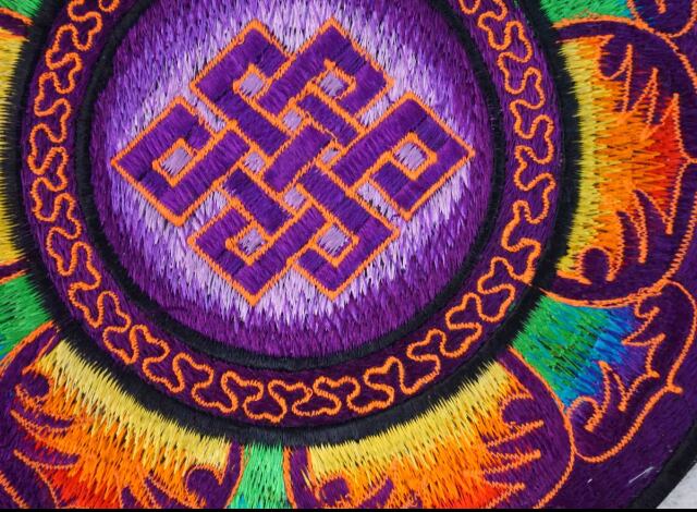 直径22cm【インド】カラフル サイケデリック 総刺繍 ワッペン(鍋敷き)