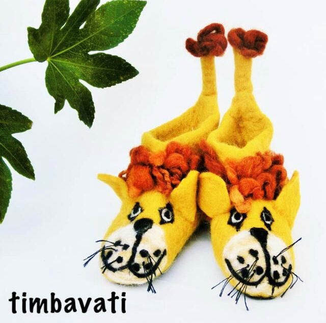 【ネパール】羊毛フェルト ルームシューズ *ライオン*サイズ15cm~16cm