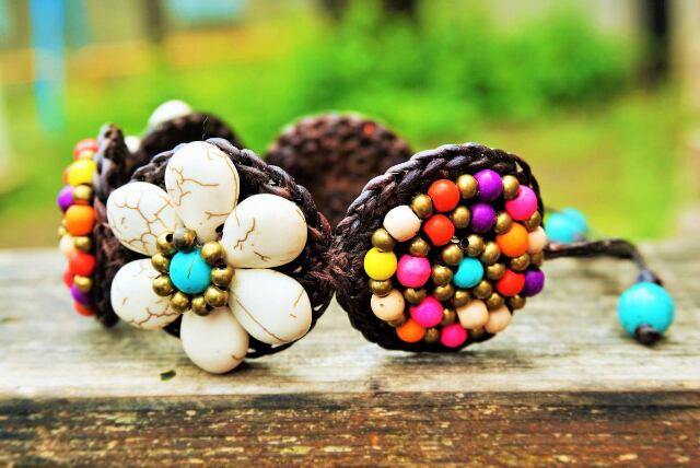 ひとつひとつ手作りで丁寧に仕上げたアジアンブレスレットです。