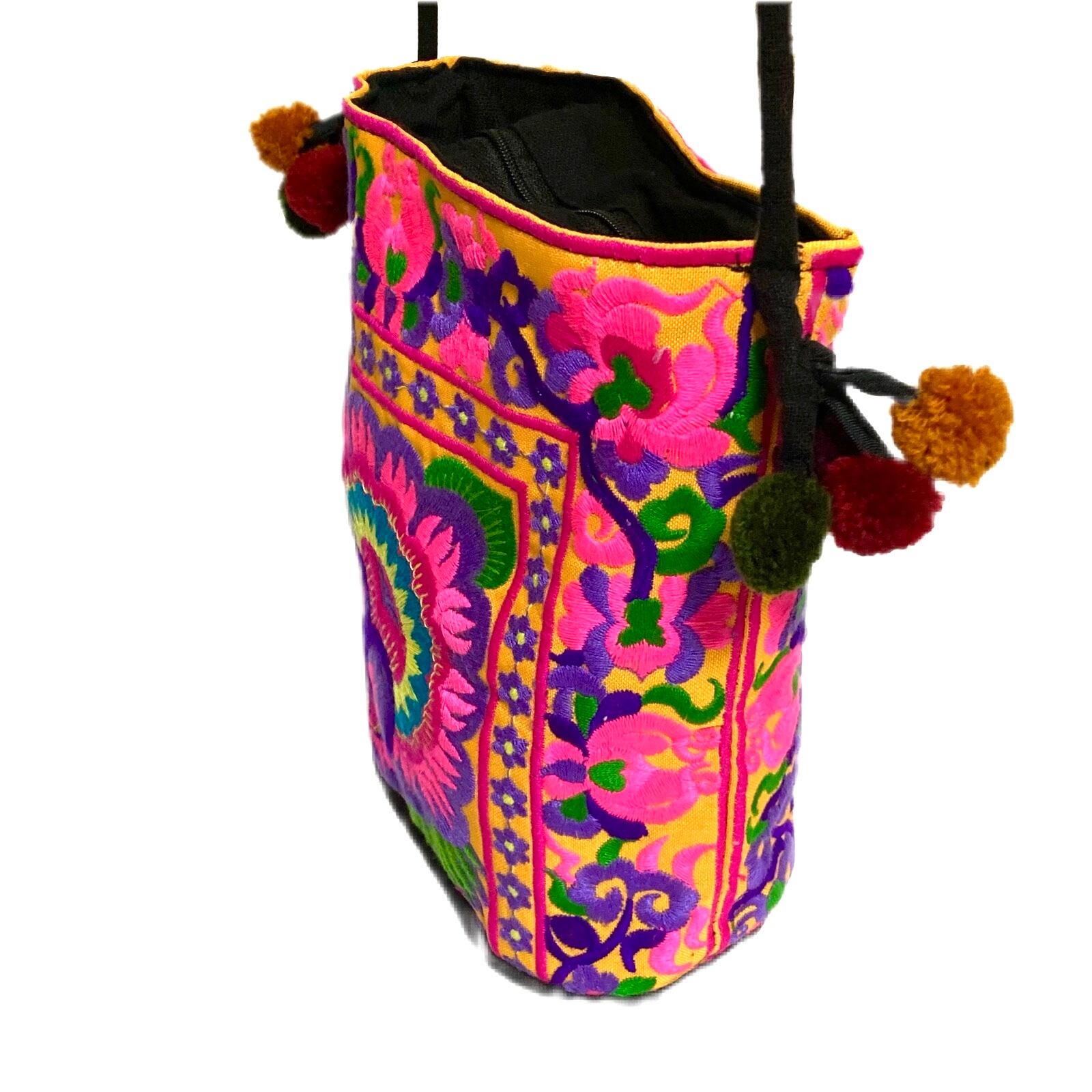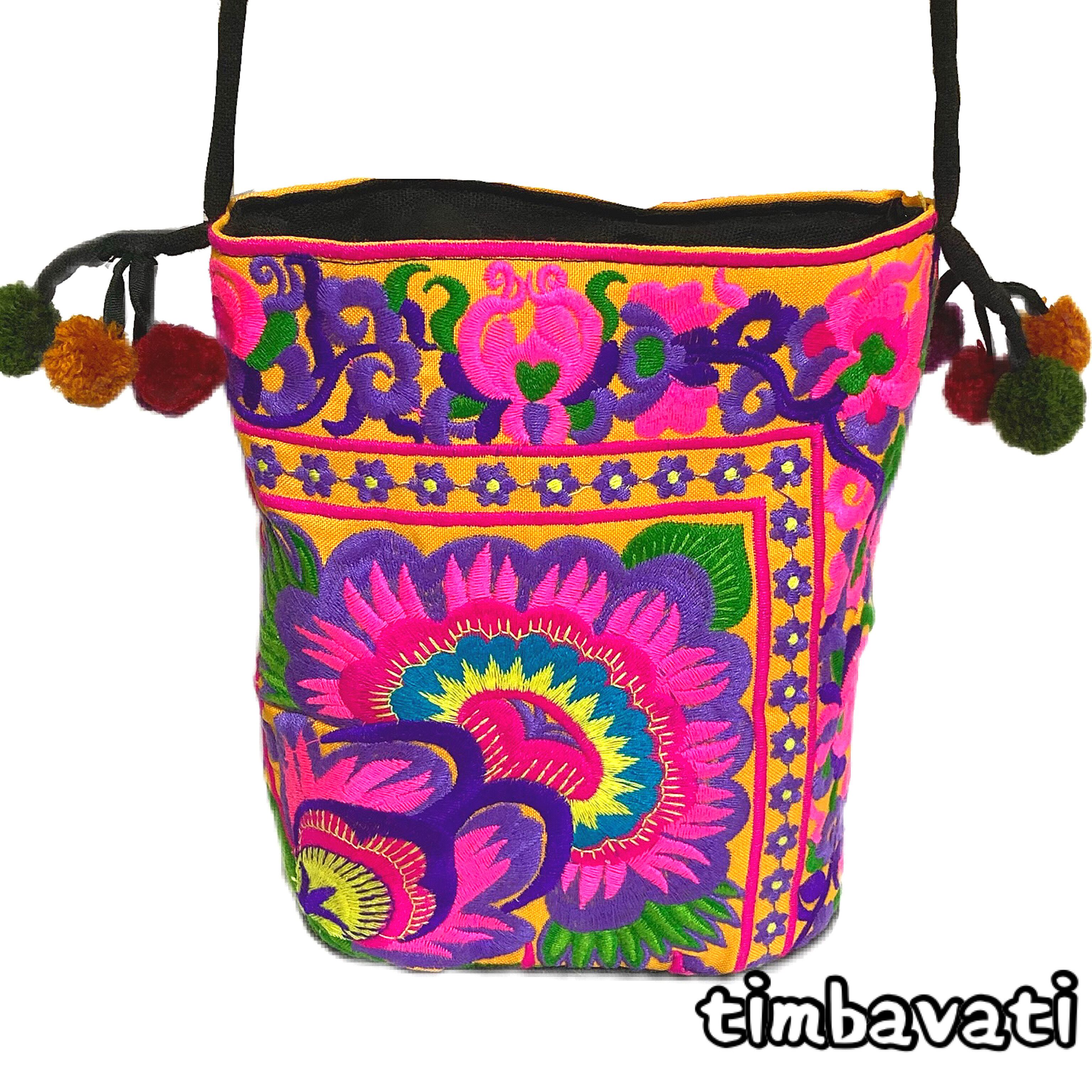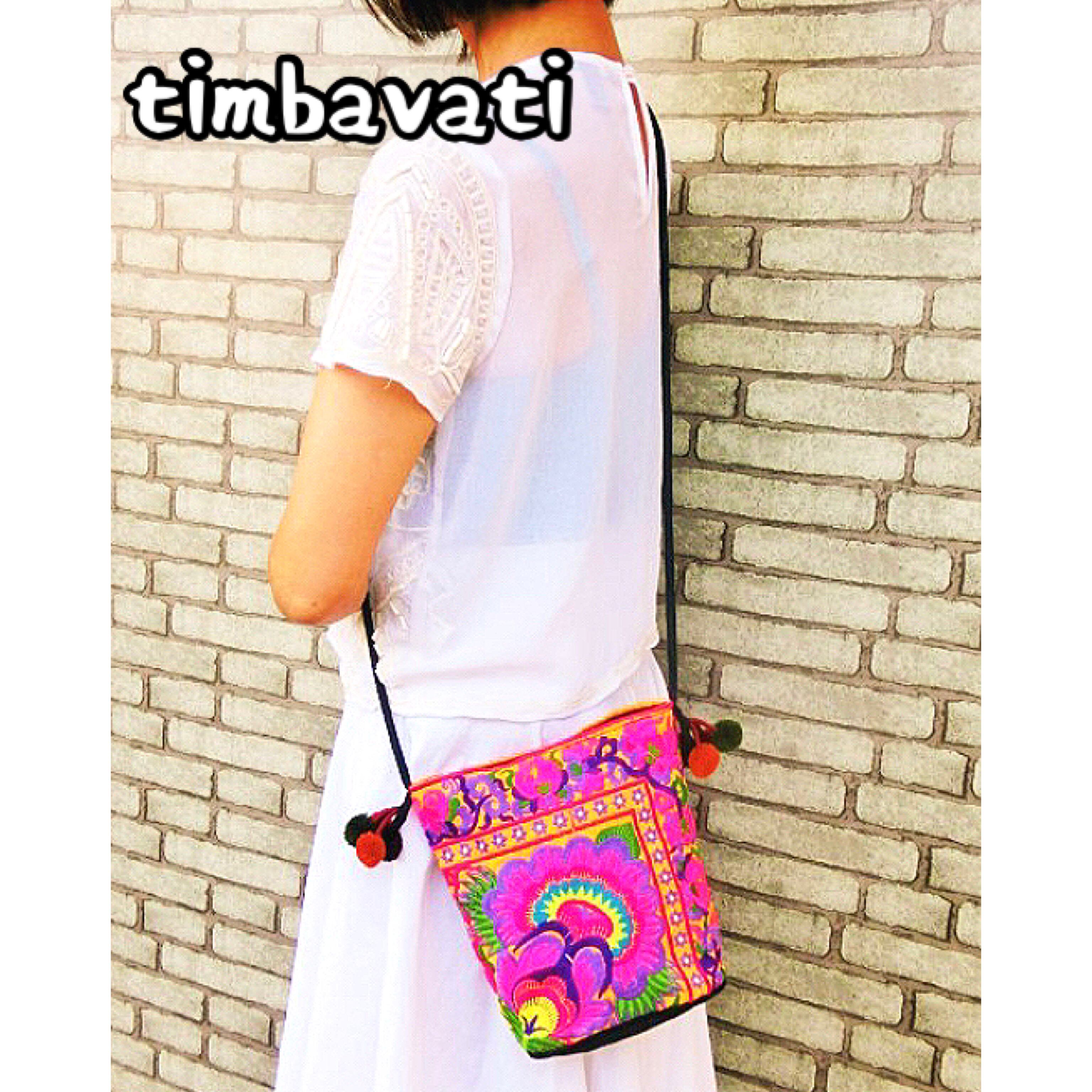 【タイ】モン族 刺繍 ショルダーバッグ(マチあり)