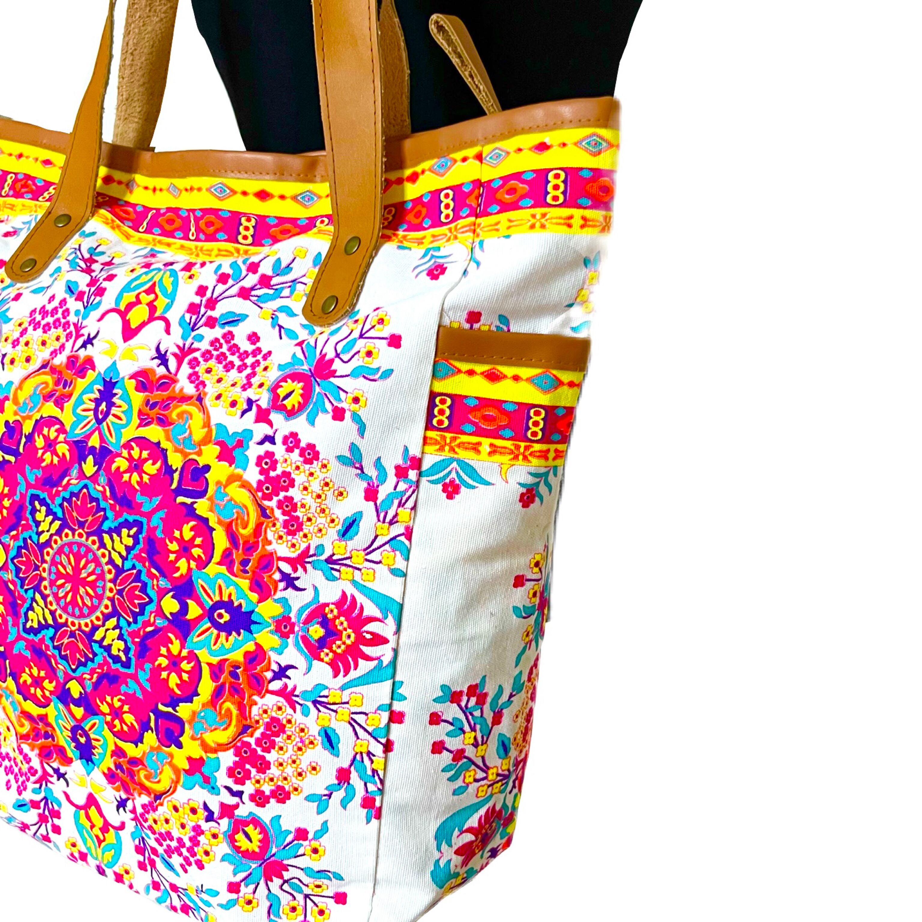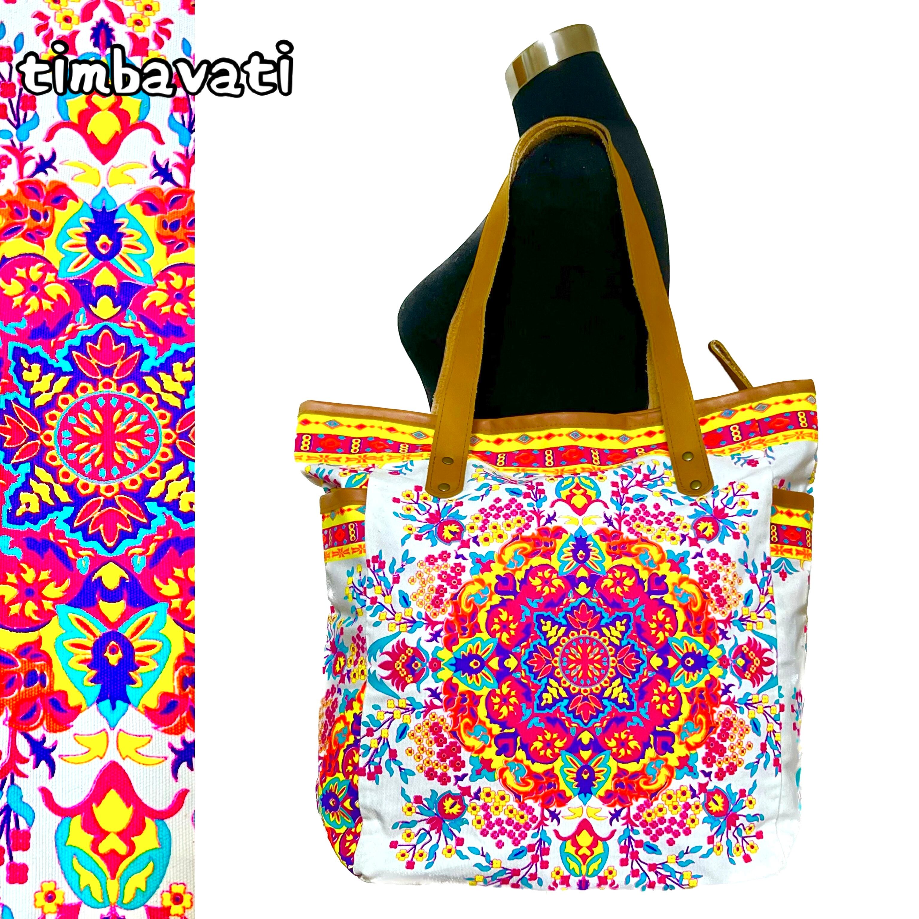 色鮮やかなネオンカラーのエスニックトートバッグ