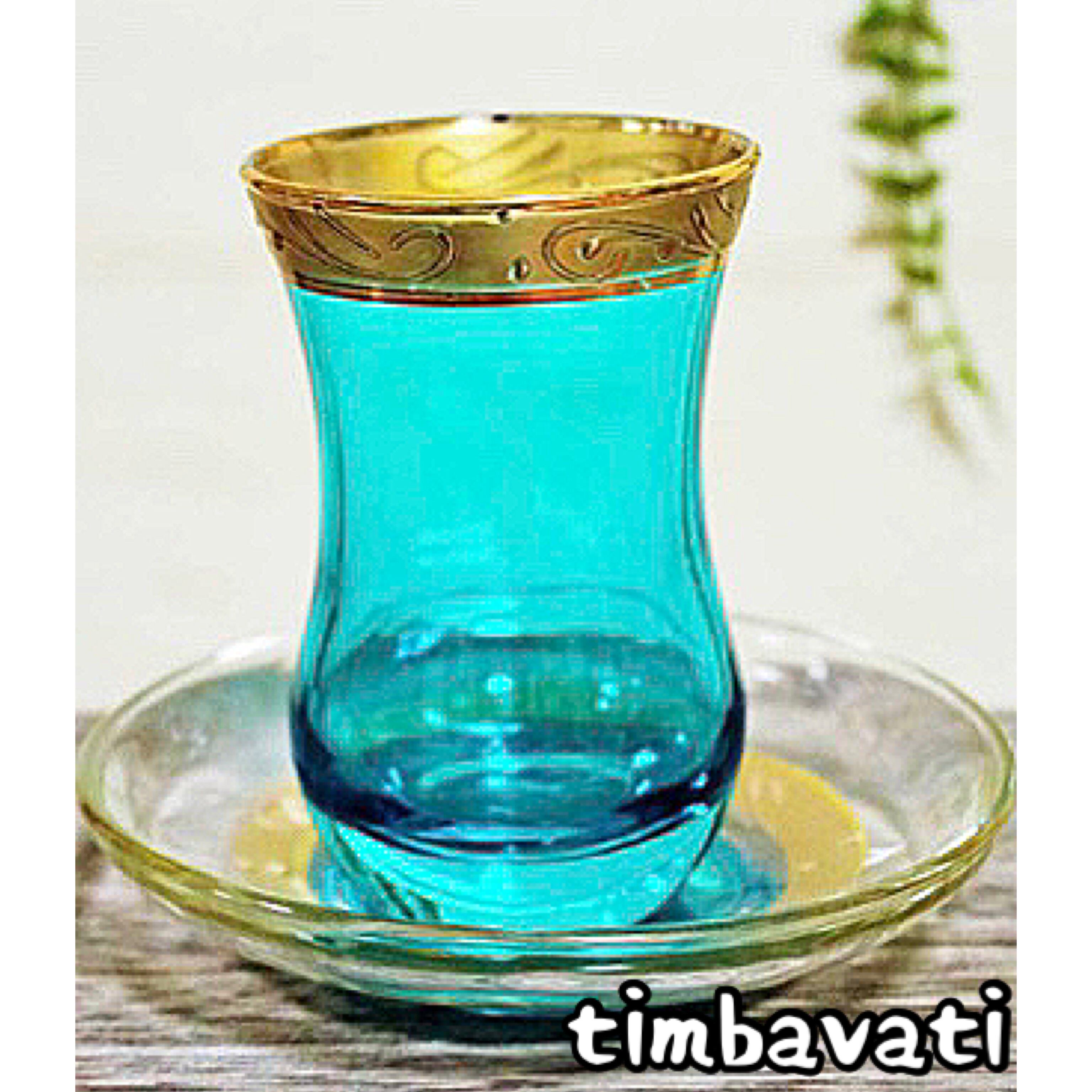 【トルコ】耐熱 チャイグラス&ソーサー *ネオンブルー ゴールド*