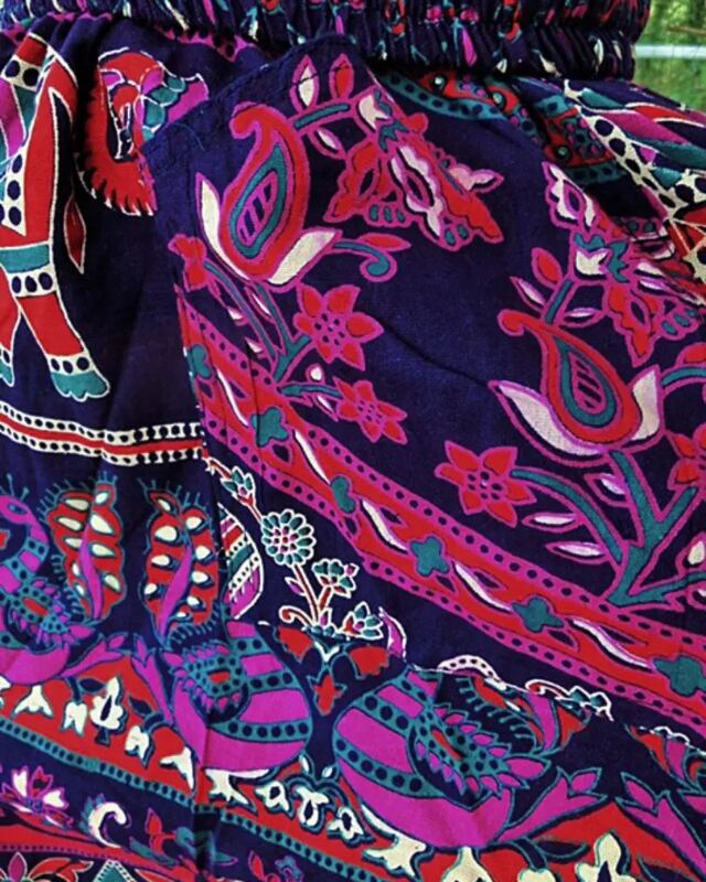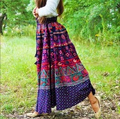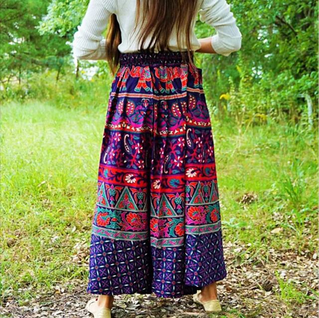 【ネパール】アジアン柄 ロングスカート フリーサイズ (パープル) ポケット×2