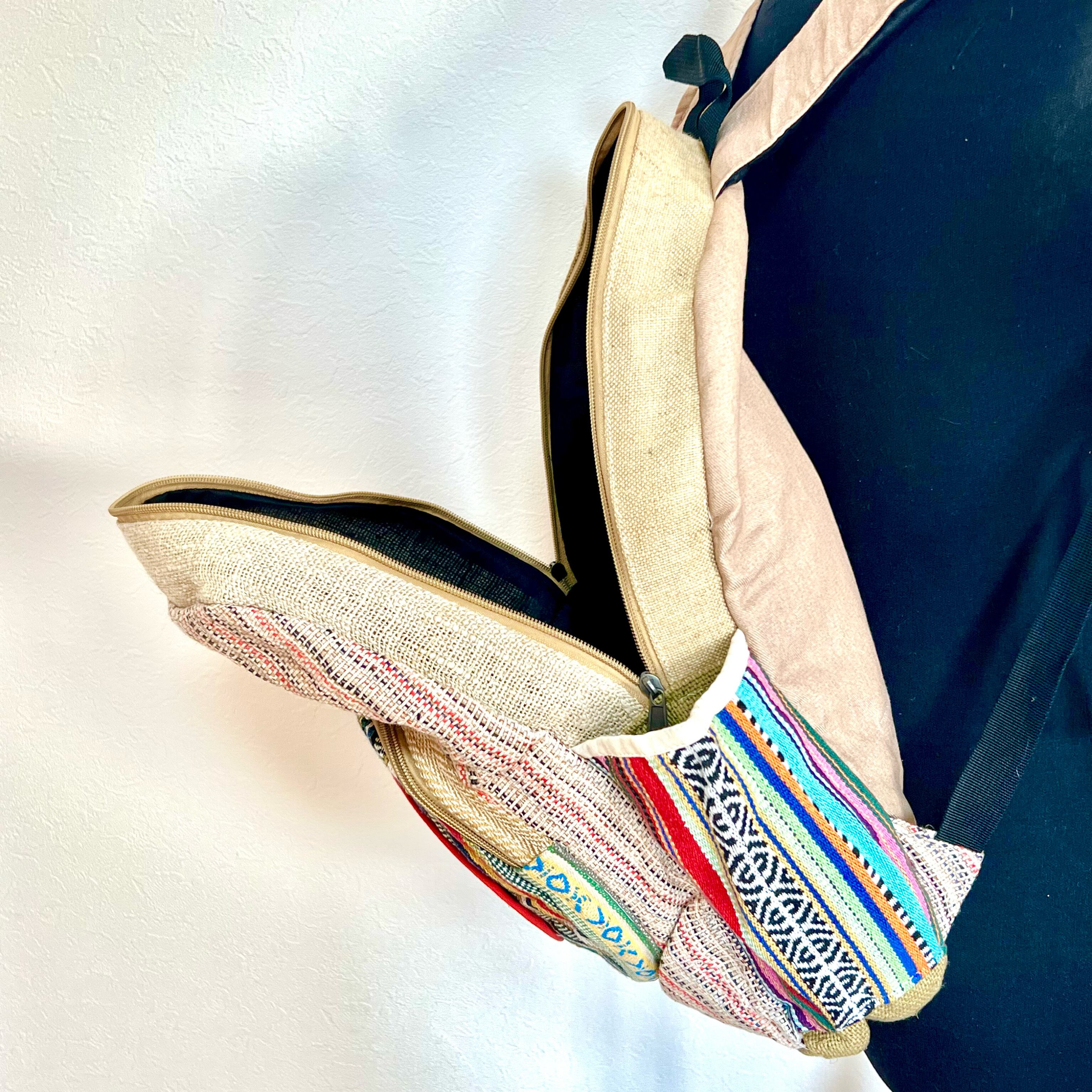 *ゲリ織と丈夫な麻のエスニックテイストのリュックです