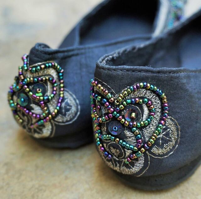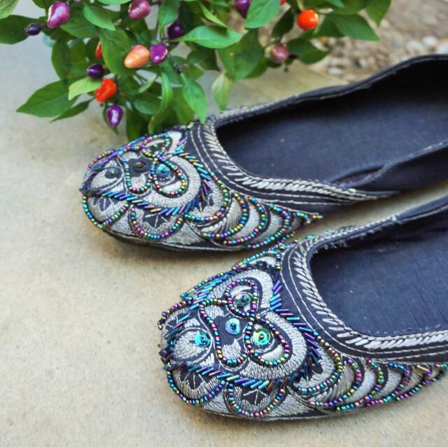 【ベトナム】アジアン ビーズ&刺繍 フラットシューズ *ブラック系*