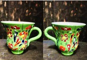 【トルコ陶器】手描き チャイグラス&ソーサーセット クレイ *グリーン*