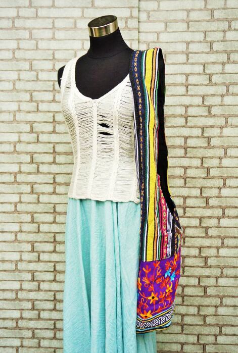 *ゲリ織とミラーワークのアジアンテイストのロングショルダーバッグです。