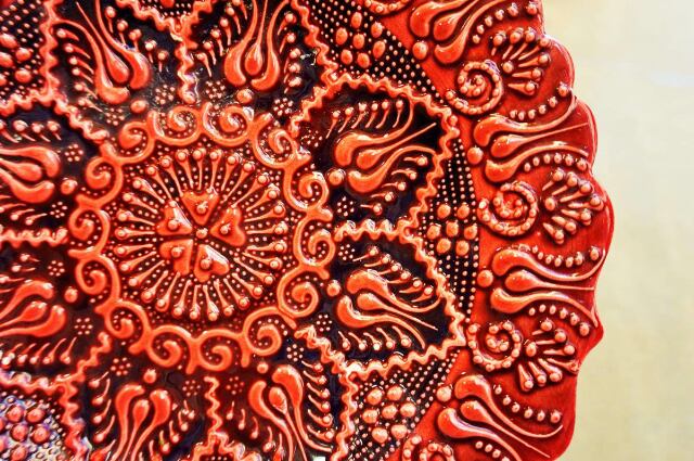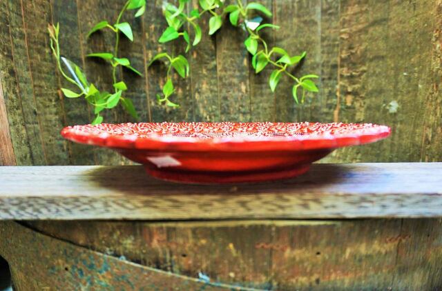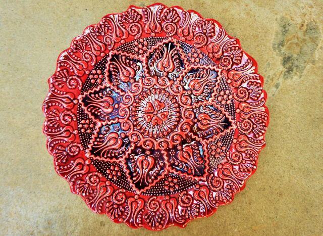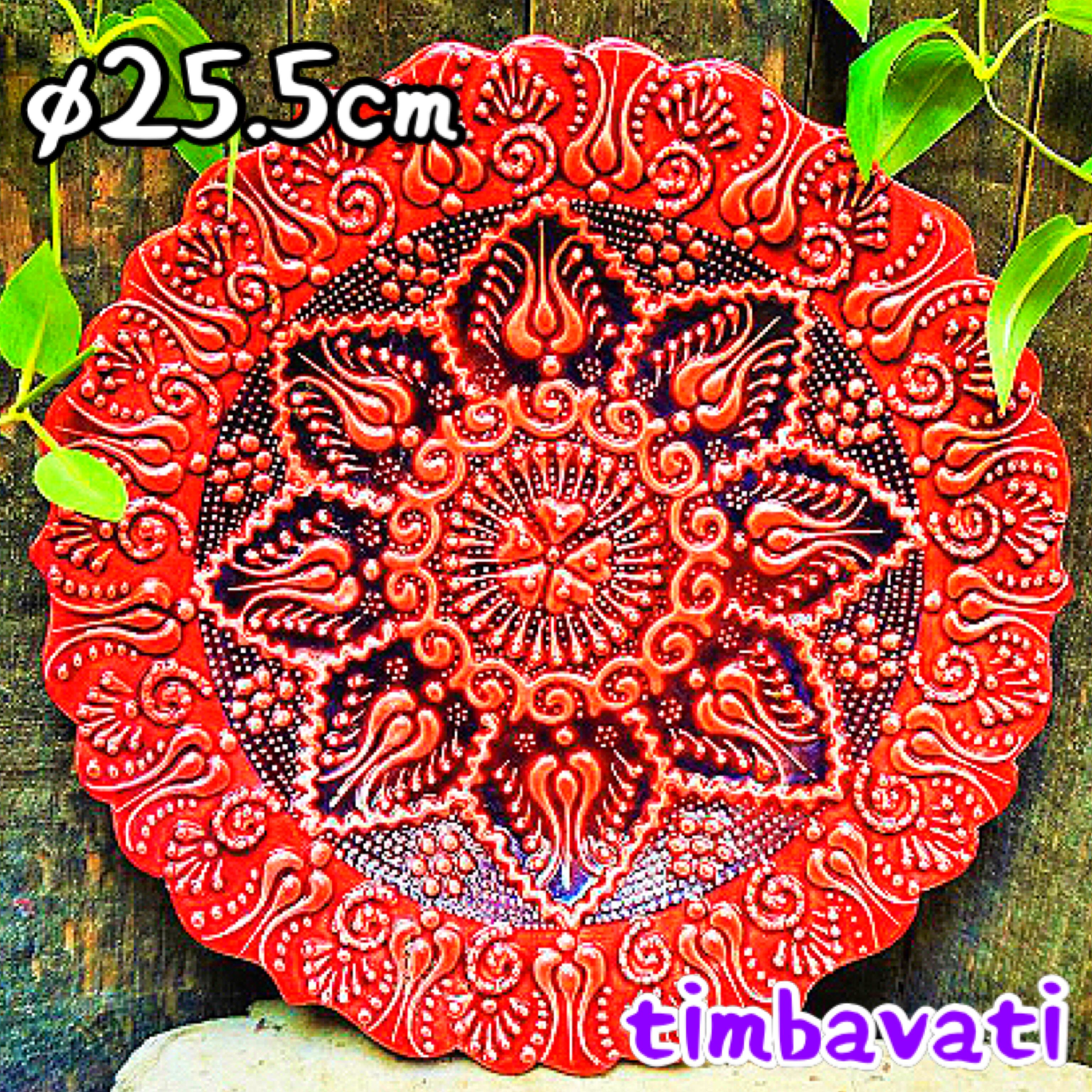 25.5cm【トルコ陶器】手描き 大皿 壁掛け *レッド*キュタフヤ陶器