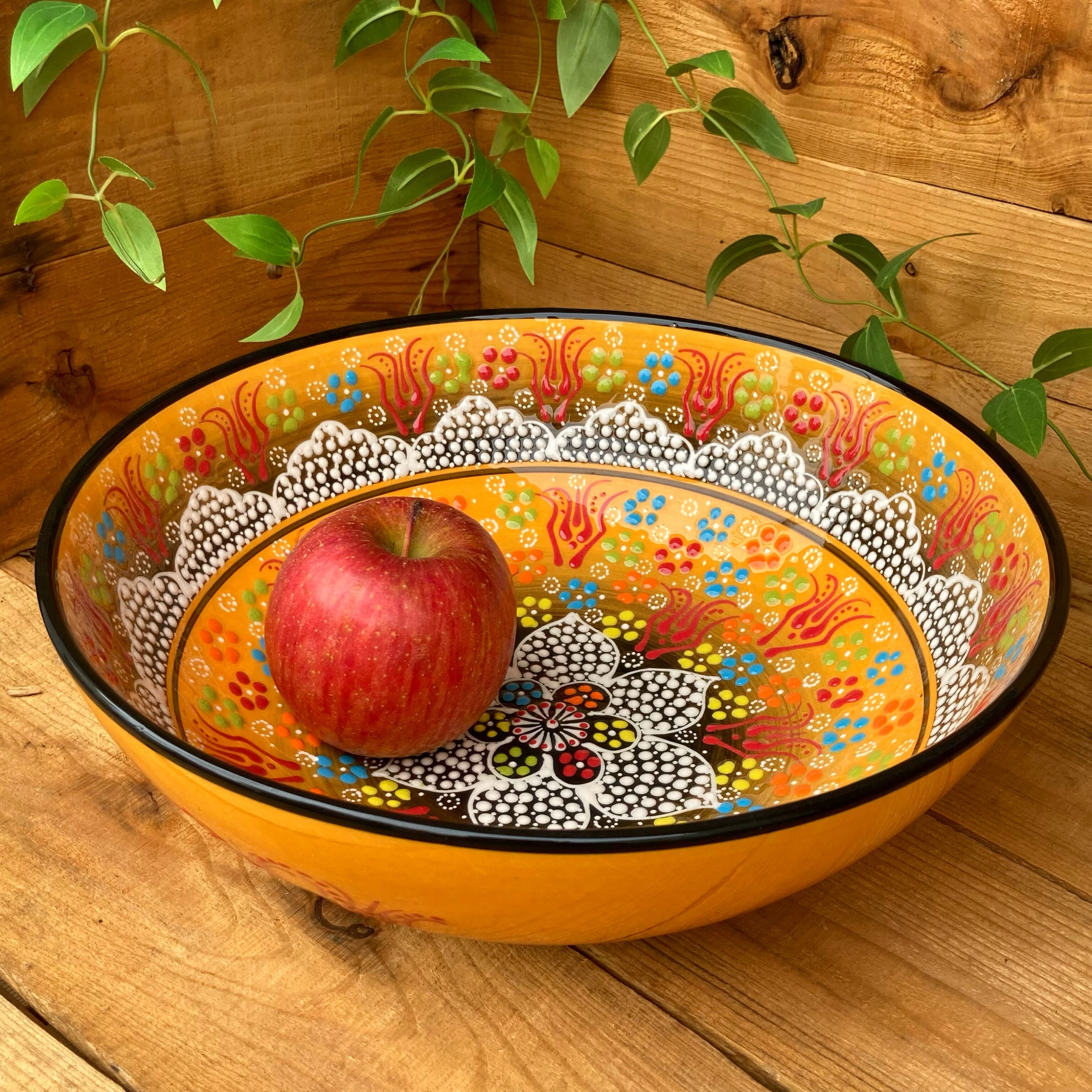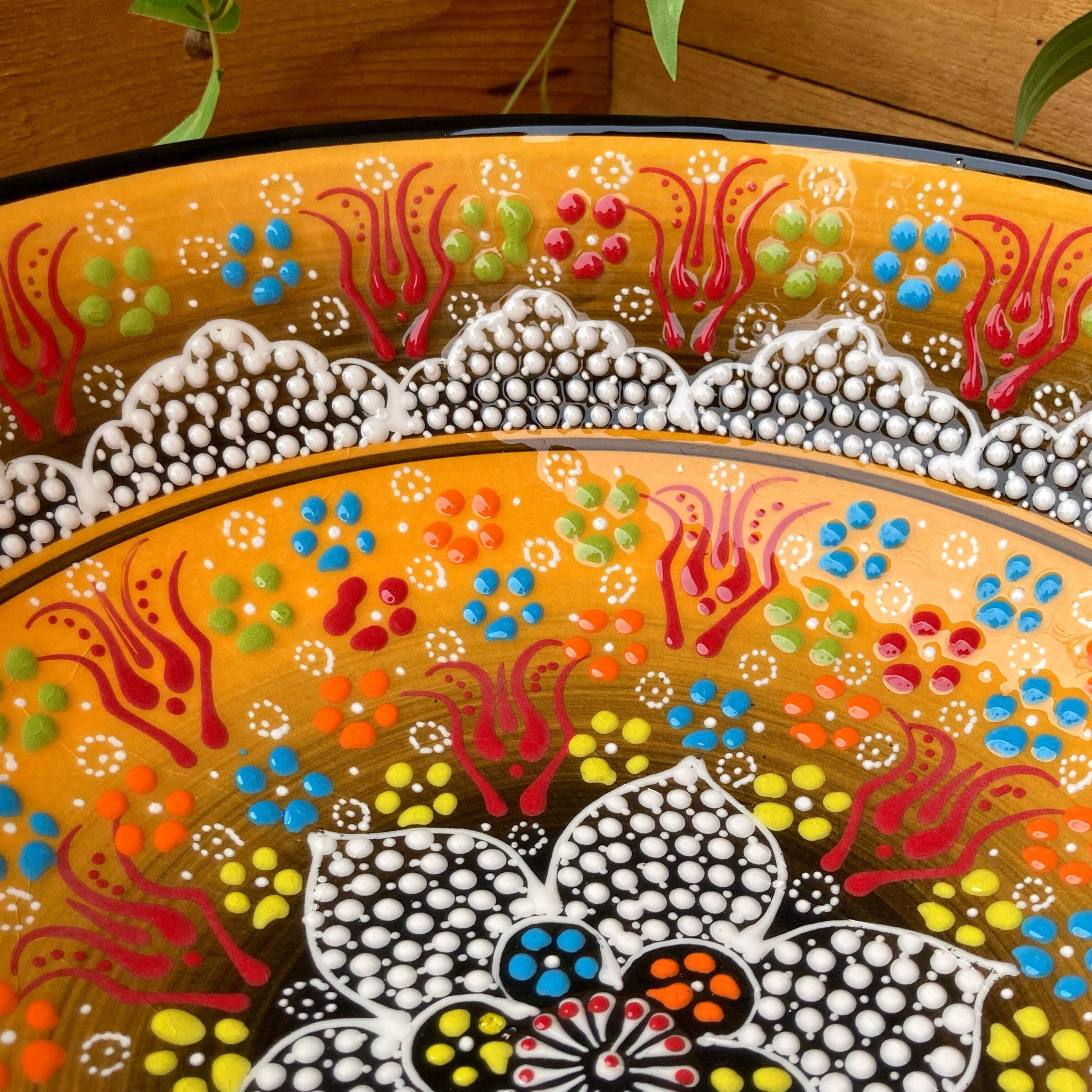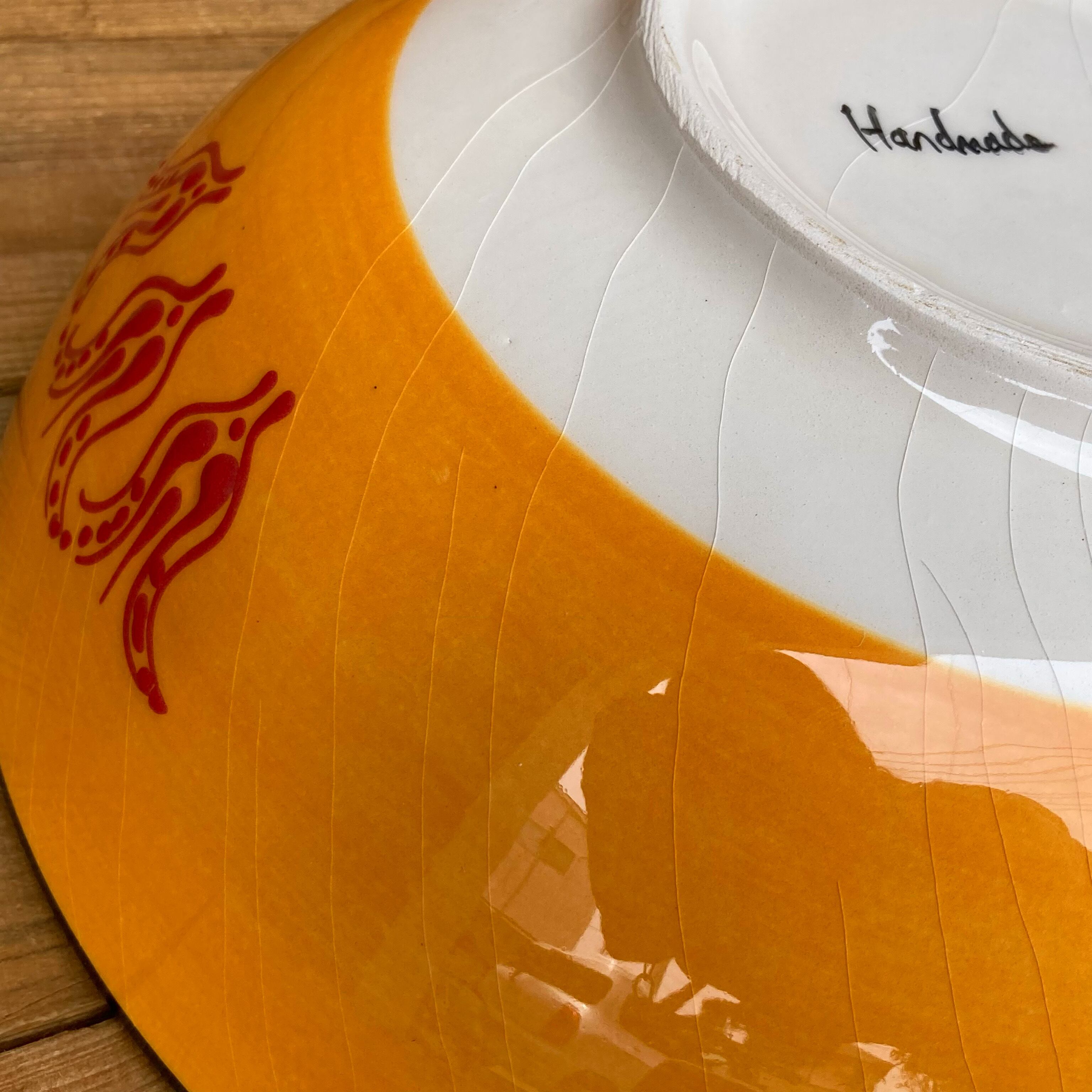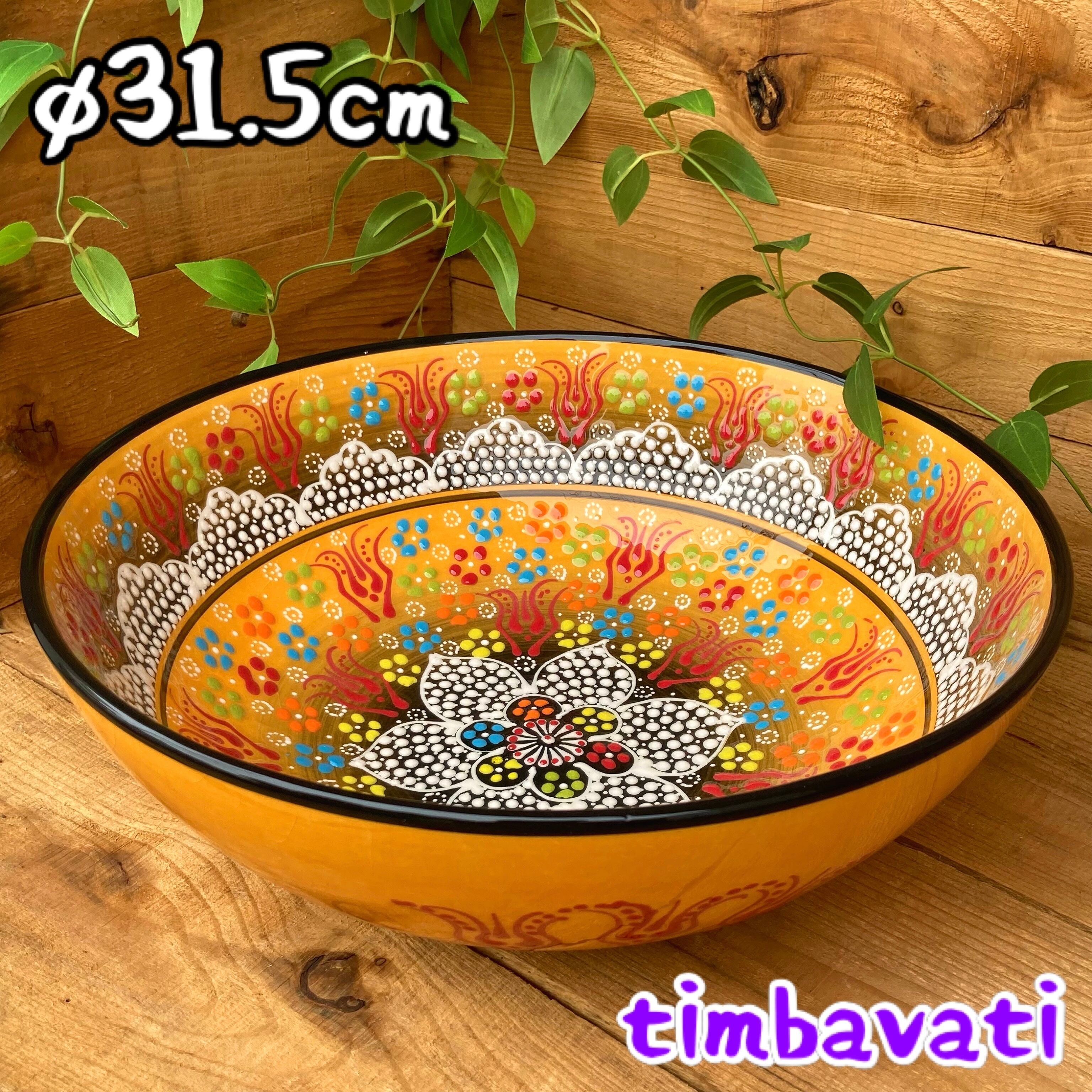 31.5cm【トルコ陶器】手描き 特大サイズ ボウル*オレンジ*キュタフヤ陶器